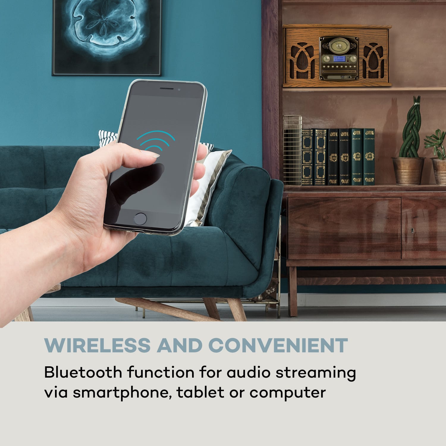 Stereo systém auna NR-620 DAB spája minulosť s budúcnosťou: ponúka veľa možností prehrávania a zaujme svojim nostalgickým dizajnom.Stredobodom stereo systému NR-620 DAB je gramofón skrytý pod pekným krytom, ktorý spolu s kazetovým prehrávačom zabudovaným na bočnej strane, DAB+/UKW rádiom a prehrávačom CD na MP3, ponúka rôzne možnosti prehrávania. Cez predný USB port môžu byť prehrávané MP3 z USB-kľúčov a MP3 prehrávačov. Vďaka funkcii Easy Recorder môžete ľahko nahrávať hudbu z gramofónových platní, CD, rádia alebo kazety priamo vo formáte MP3. Ale to nestačí: funkcia Bluetooth umožňuje bezdrôtové streamovanie hudby zo smartfónu, tabletu alebo počítača.Stereo systém NR-620 od auna zapadne svojim elegantným a príjemným dizajnom do každého prostredia a nadchne svojou funkcionalitou.