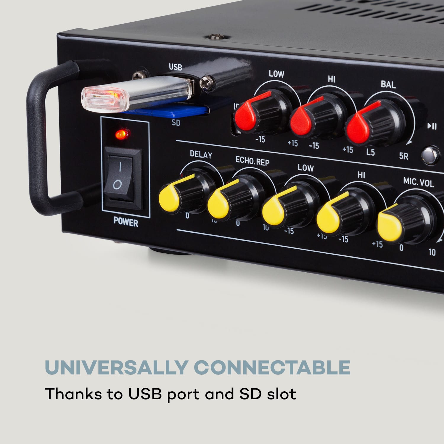 Silná podpora Vášho hlasu: HiFi karaoke zosilňovač auna Pro Amp EQ BT presvedčí vysokými výkonnostnými údajmi, mnohými možnosťami pripojenia a početnými funkciami.Zariadenie auna Pro Amp EQ BT s regulátorom basov a výšok je veľmi kompaktný karaoke zosilňovač s flexibilným využitím v rámci HiFi a PA použitia. Zadný AUX vstup a linkový výstup spájajú zosilňovač auna Pro so zariadeniami, ako sú DVD prehrávače, CD prehrávače, počítače a MP3 prehrávače. Okrem toho zosilňovač ponúka pripojenie dvoch káblových mikrofónov, čo rozširuje okruh použitia na udalosti, ako sú karaoke večierky, stretnutia alebo prezentácie. Mikrofónna sekcia sa reguluje samostatne a je vybavená regulovateľnými efektmi delay a echo na dosiahnutie optimálneho zvukového výsledku. Vďaka svojim malým rozmerom si HiFi karaoke zosilňovač auna Pro Amp EQ BT nájde miesto kdekoľvek a kedykoľvek. Vďaka pevnému kovovému šasi je neobmedzene vhodný na prepravu.