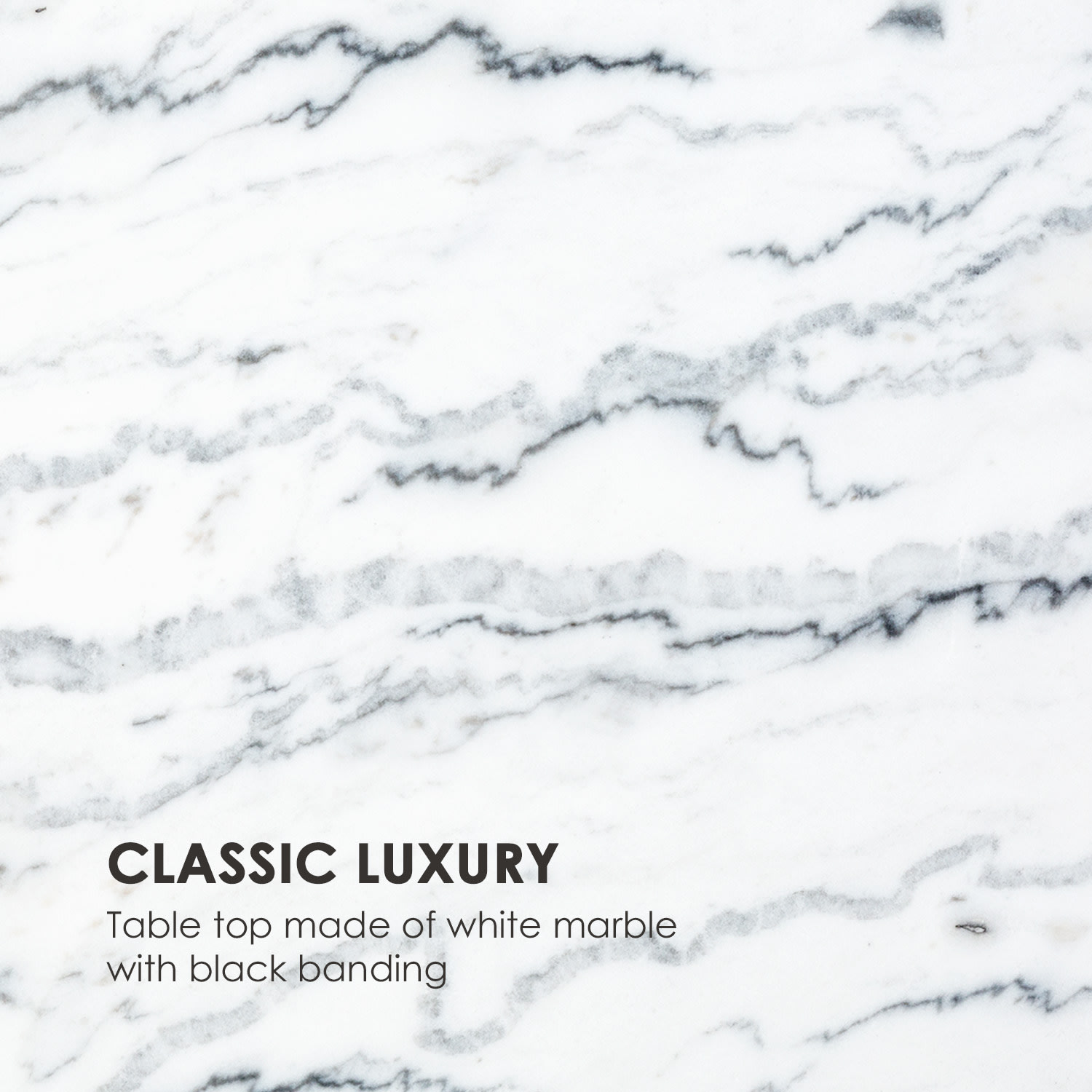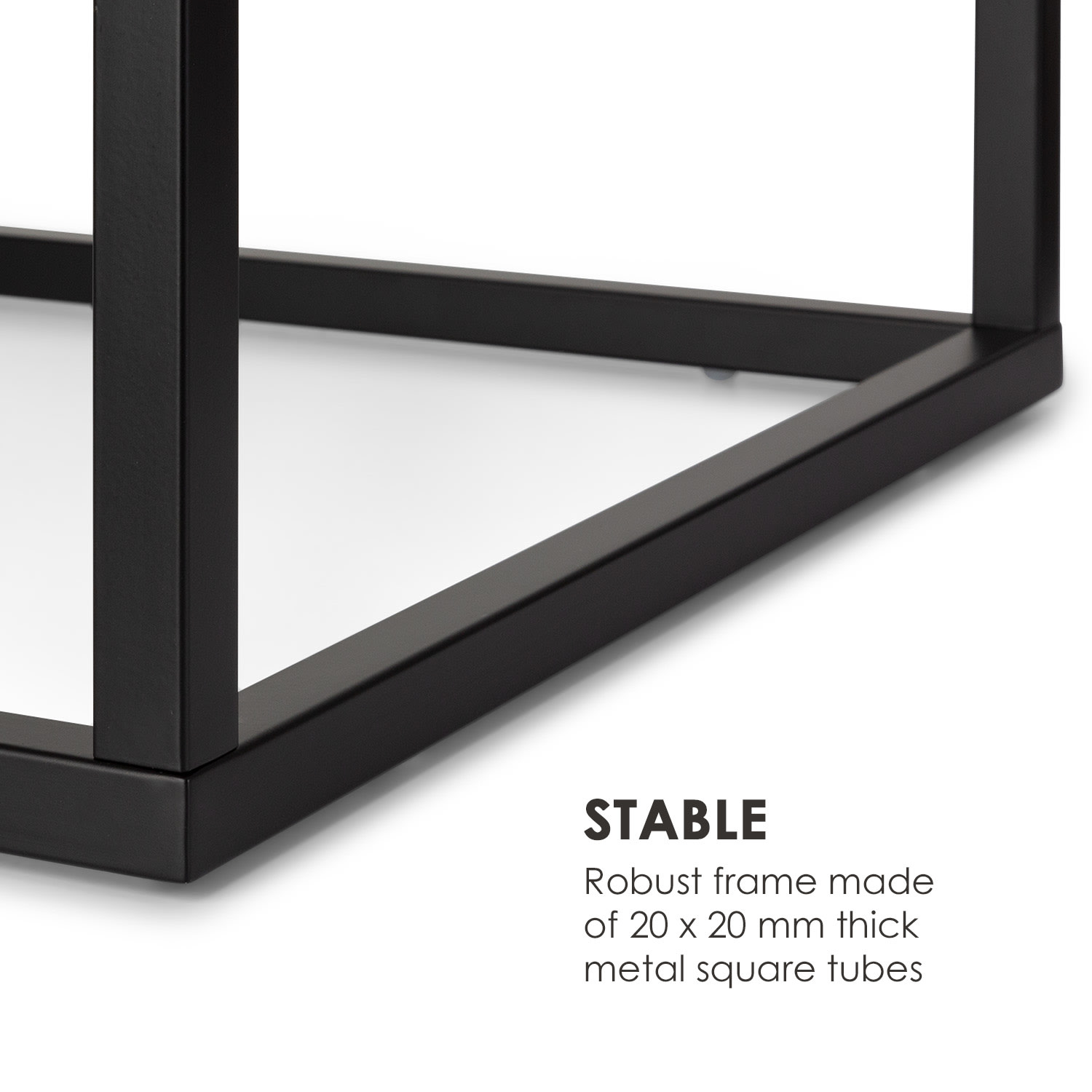Klasicky moderný: konferenčný stolík Besoa Volos T50 kombinuje materiály, ktoré sa používali od čias antiky, s moderným dizajnom, a svojou eleganciou obohacuje každú miestnosť.Príručný stolík Besoa Volos T50 s nadčasovou eleganciou do interiéru aj exteriéru. Jeho hladká, leštená biela mramorová doska stola s čiernymi žilkami ti domov prinesie luxus z čias Kráľa Slnka. Elegantná doska stola je navyše podčiarknutá a stabilne upevnená vďaka čiernemu kovovému rámu z rúrok s hrúbkou 20 x 20 cm. Dvojitá ochrana je lepšia, a preto má rám stolíka Volos elektrostatický povlak aj práškovú povrchovú úpravu. To poskytuje rámu vysokú odolnosť voči poveternostným vplyvom, mrazu a vode – takže stolík Volos T50 sa dá bez problémov používať aj na balkóne, terase alebo v záhrade. Konferenčný stolík zostáva pritom z hľadiska tvarov moderný a jednoduchý, takže sa perfektne začlení do tvojej obývačky. Vďaka svojim praktickým rozmerom 50 x 40 x 50 cm je stolík Volos T50 ideálny ako konferenčný stolík alebo ako príručný odkladací stolík.Klasické materiály v modernej podobe: konferenčný stolík Besoa Volos T50.