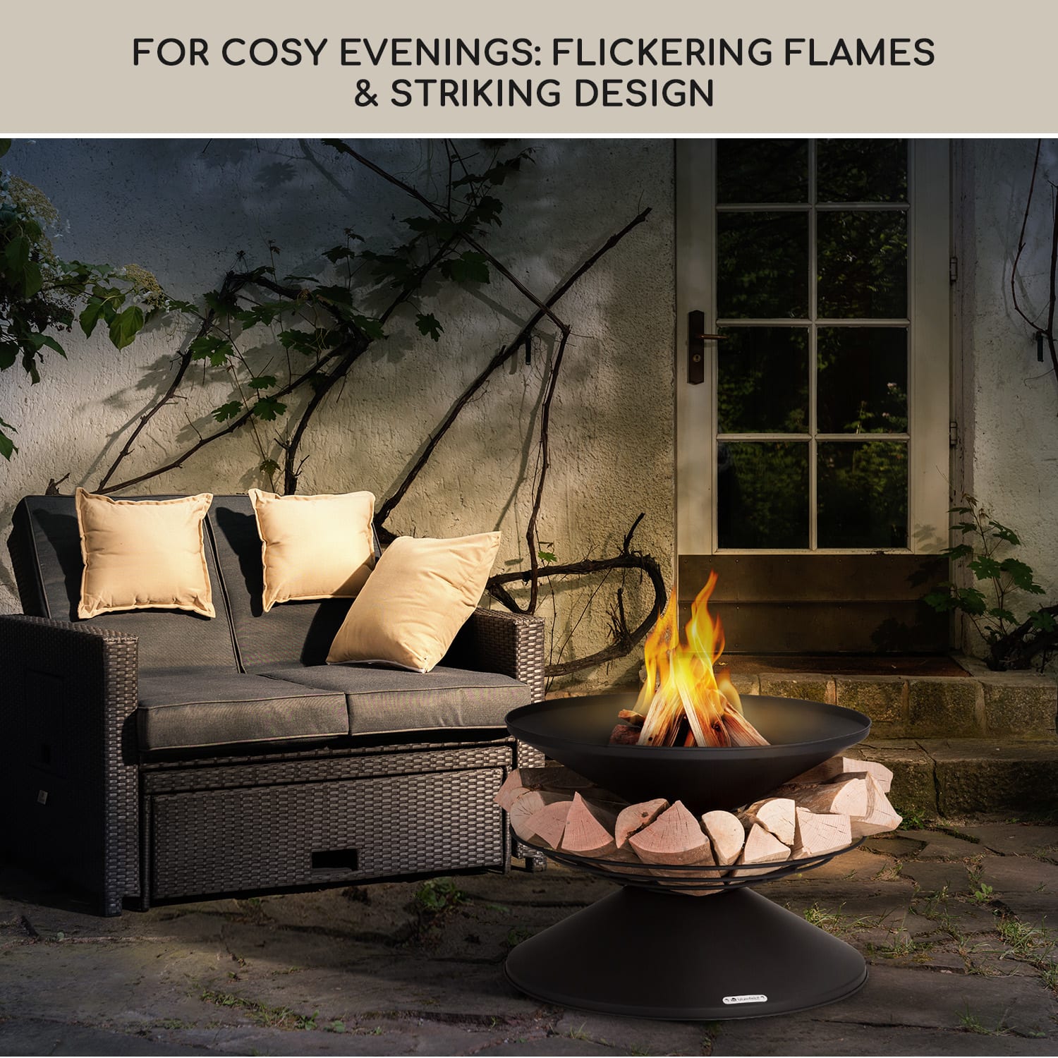 Uvoľnené hodiny relaxu v záhrade alebo na terase, dokonca aj počas chladných dní! Ohnisko s grilom Aguilera od blumfeldt to umožní dvomi spôsobmi. V ohnisku s priemerom 65 cm poskytujú drevené uhlie alebo drevo príjemné teplo a atmosféru táboráku. Ohnisko je vyrobené z ocele – takto vydrží nápory počasia a ohňa a po použití ho môžete vďaka priloženej nádobe na popol jednoducho očistiť. S ohniskom to bude aj plné chuti, keď na neho položíte grilovací rošt. Cez otvor v rošte môžete pohrabáčom rozhrabávať palivo, bez toho aby ste grilovací rošt odnímali. Aby plamene mali stále dostatok paliva, je stojan ohniska Aguilera od blumfeldt dizajnovaný ako úložný priestor na drevo. Okolo hlavného stojanu tak môžete uložiť množstvo drevených polien. Takto máte drevo neustále po ruke a zároveň zdobí ohnisko. Praktická ochrana proti iskrám sa stará o dodatočnú bezpečnosť a bráni tak nekontrolovanému lietaniu iskier.Romantický táborový oheň a praktický gril v jednom: ohnisko s grilom Aguilera od blumfeldt.