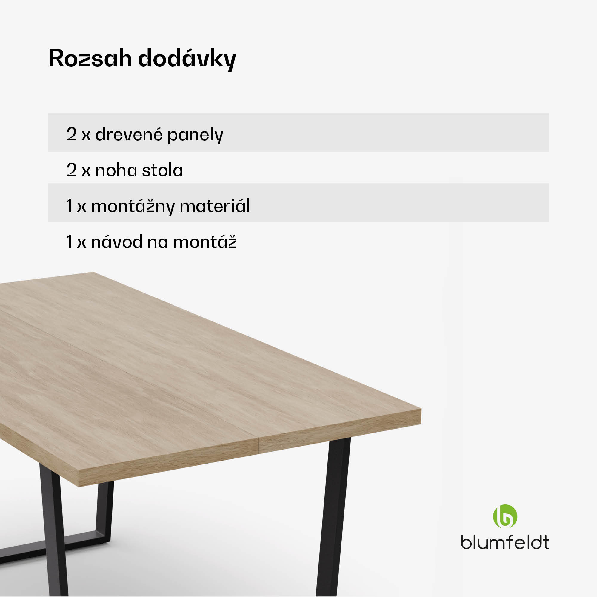 Súprava jedálenskeho stola Blumfeldt Bearsdon kombinuje štýlovú stolovú dosku z preglejky a robustné kovové nohy v industriálnom štýle a dodáva vašej jedálni alebo kuchyni moderný loftový charakter. Táto súprava zaujme kombináciou funkčnosti a dizajnu: stolová doska Bearsdon z odolnej preglejky ponúka odolný povrch, ktorý je ideálny na každodenné používanie. Je mimoriadne robustná a odolná voči zmene farby, teplu, poškriabaniu a nárazom. Zodpovedajúce nohy stola Ayr z vysokokvalitného kovu svojou čiernou povrchovou úpravou vytvárajú moderné akcenty a zaisťujú stabilitu. S jedálenským stolom Blumfeldt Bearsdon Bundle môžete vytvoriť štýlový dizajnový doplnok, ktorý sa dokonale hodí k rôznym štýlom zariadenia.