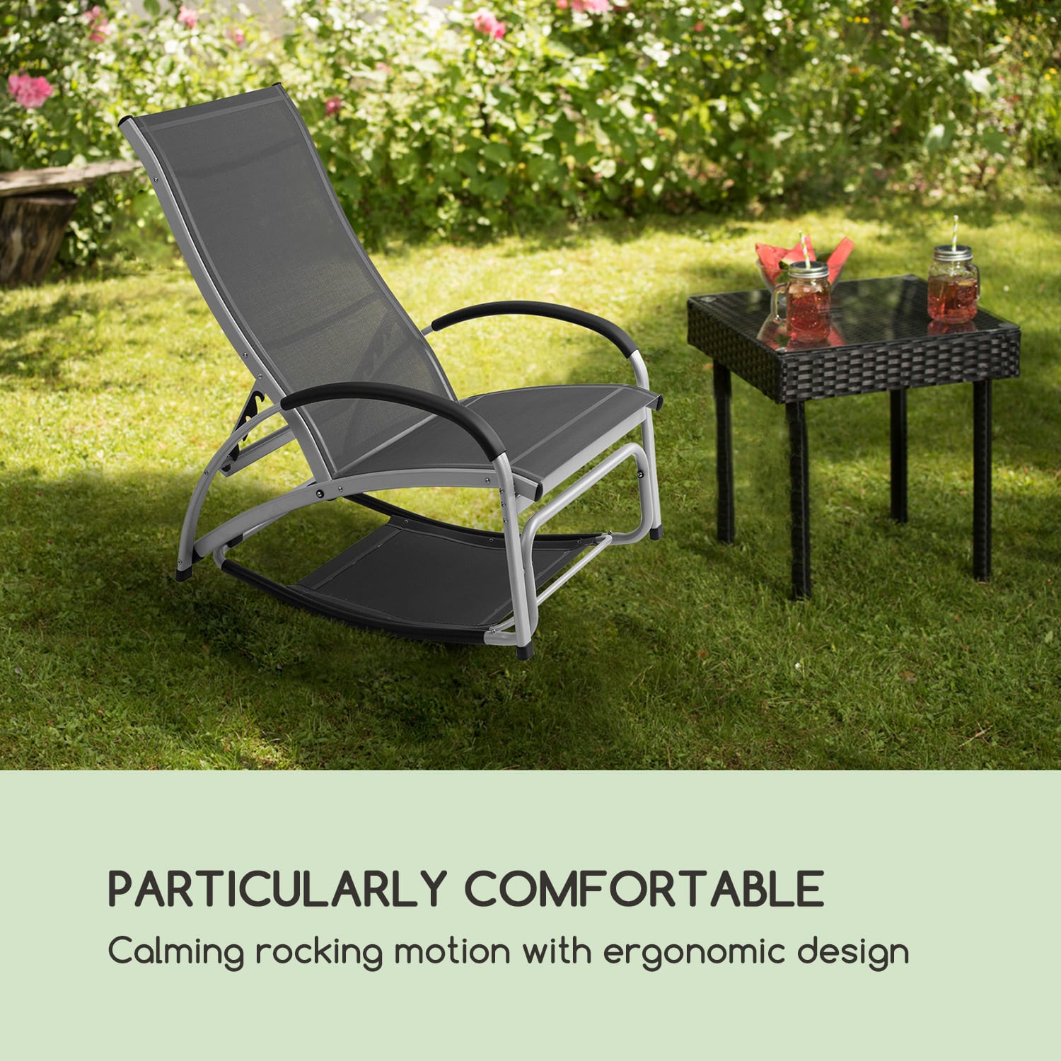 Dokonalá relaxácia! záhradné lehátko Blumfeldt Beverlywood robí zo záhrady, balkóna a terasy oázu relaxu. Elegantný dizajn ležadla sa dokonale začlení do každej záhrady a zapôsobí svojou jednoduchou eleganciou. Na želanie dokonca ako hojdacie kreslo! lehátko ponúka plochu na oddych z priedušnej, pohodlnej sieťoviny comfort mesh, ktorá je ideálna v teplých slnečných dňoch a obzvlášť jednoducho sa čistí vďaka textilnej štruktúre s jednoduchou údržbou. V štyroch úrovniach vo výške 51 – 90 cm sa prispôsobí nastaviteľné operadlo kedykoľvek Vašim potrebám v niekoľkých jednoduchých krokoch. Výnimočné! V priebehu niekoľkých sekúnd sa stane zo záhradného ležadla hojdacie kreslo. Pritom stačí skopiť nadol diel pri nohách, upevniť ho zapadnutím do dvoch držiakov a môžete sa uvoľnene hojdať. Samozrejme, aj tu je operadlo nastaviteľné, čo dodatočne zvyšuje komfort. záhradné lehátko alebo hojdacie kreslo je nielen robustné s robustným hliníkovým rámom, ale aj obzvlášť ľahké a dá sa bez námahy hocikam premiestniť. záhradné lehátko Blumfeldt Beverlywood od spoločnosti Blumfeldt. Ideálna komfortná zóna pre všetkých, ktorí chcú obohatiť svoj každodenný život dovolenkovými momentmi a chcú oddychovať aj v hojdacom kresle.
