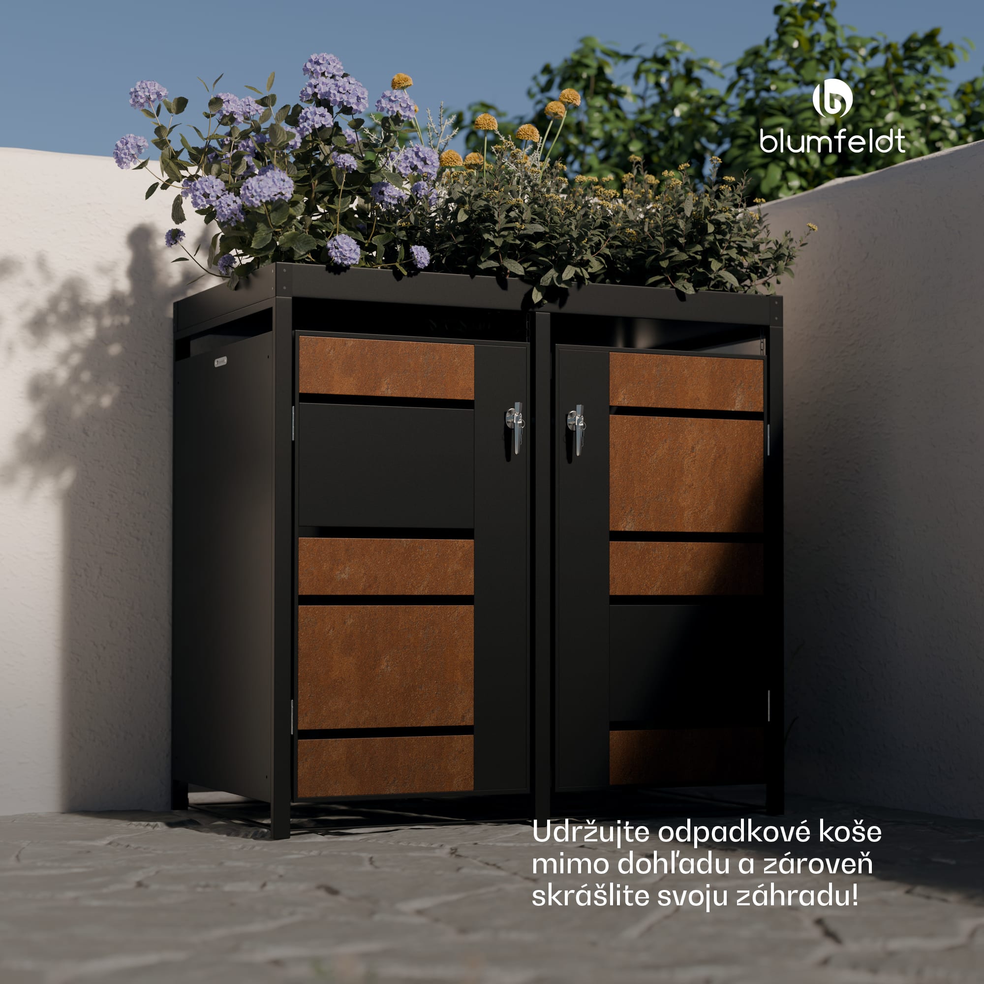 Blumfeldt BinSafe, box na odpadky, 2 odpadkové koše, 240 l, uzamykateľný, pozinkovaná oceľ odolná voči poveternostným vplyvom, výsadbová strecha