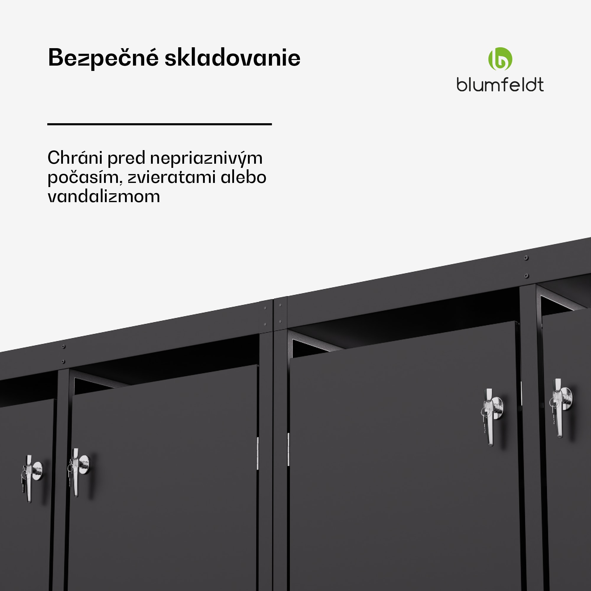 Blumfeldt BinSafe, box na odpadky, 4 odpadkové koše, 240 l, uzamykateľný, pozinkovaná oceľ odolná voči poveternostným vplyvom