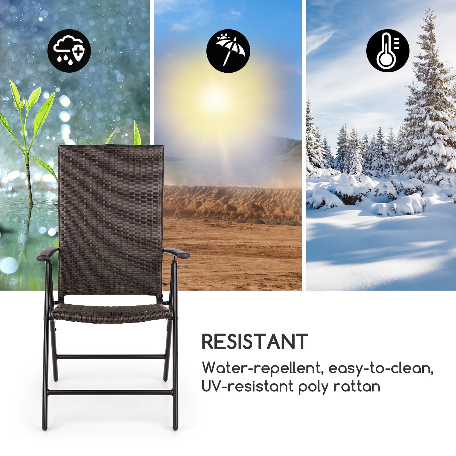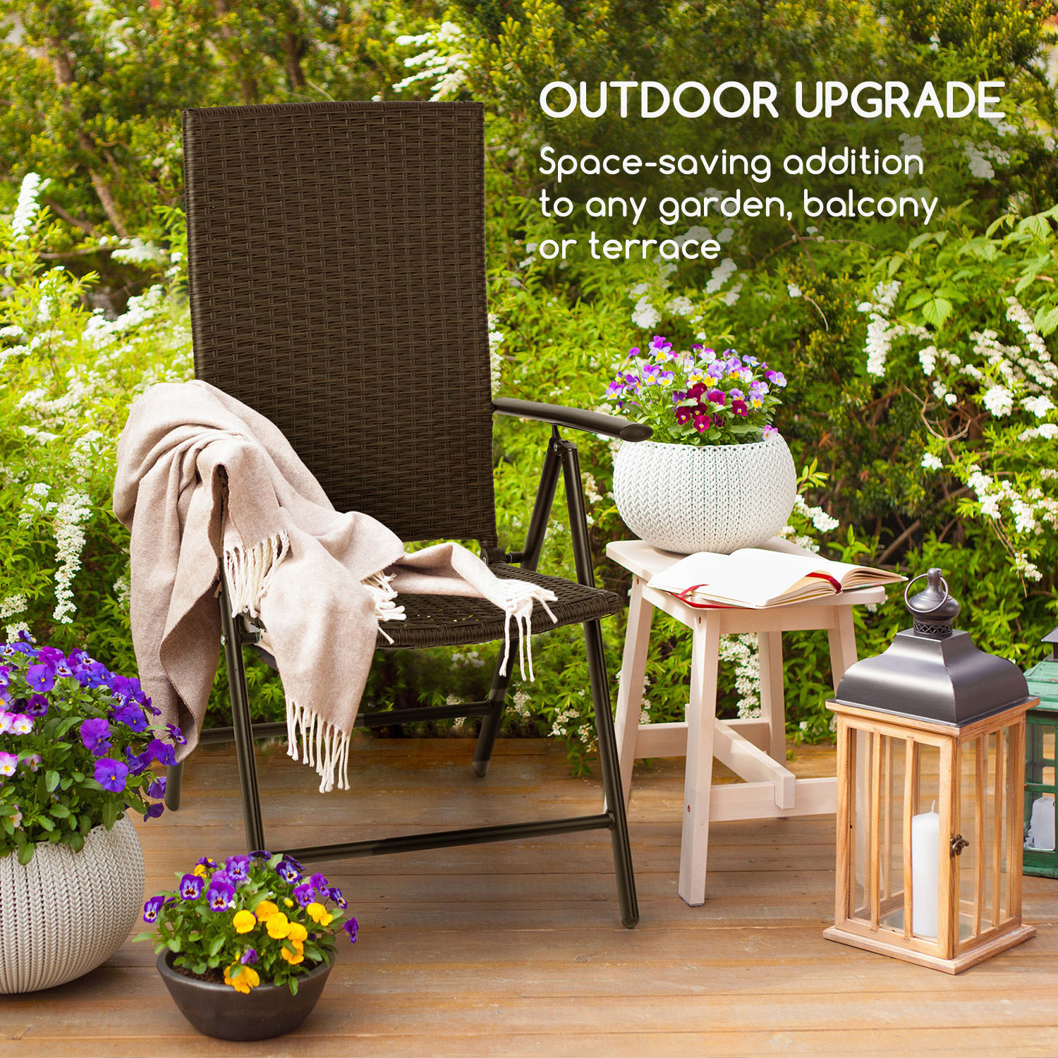 Vychutnajte si oddych na čerstvom vzduchu. Na záhradných stoličkách Blumfeldt Estoril môžete stráviť prázdniny, víkendy alebo popoludnia po práci. Či už v záhrade, na terase alebo na balkóne, vychutnajte si slnko so záhradnou stoličkou Blumfeldt Estoril. Vďaka dvojitému polyratanovému výletu je veľmi pohodlná. Aby spĺňala stolička všetky požiadavky príjemného relaxovania, jej operadlo sa dá pohodlne bez vstávania nastaviť do 7 pozícií, od sedenia po ležanie. Podľa osobných preferencií, vo vystretej polohe na vypitie kávy alebo sklopená pozícia na zdriemnutie na čerstvom vzduchu. Stálofarebný polyratanový výplet je odolný voči poveternostným vplyvom, veľmi rýchlo schne a dá sa jednoducho vyčistiť vlhkou utierkou. Stolička je tak vždy pripravená na ďalšie opaľovanie. Ma tiež dlhodobú úžitkovú hodnotu. Rám z hliníkových rúrok je maximálne stabilný, takže skladacia stolička váži len 4 kg. Práškové lakovanie kovových častí sa postará o dodatočnú odolnosť voči poveternostným vplyvom. Vďaka konceptu SmartSpace Concept je možné stoličku zložiť v niekoľkých jednoduchých krokoch, aby ste ju mohli uskladniť alebo zloženú preniesť napríklad k jazeru. A keďže oddych je najkrajší vo dvojici, dodávajú sa záhradné stoličky Estoril rovno v praktickej sade 2 kusov. Rýchlo na čerstvý vzduch! Relaxujte celé leto so záhradnou stoličkou Blumfeldt Estoril.