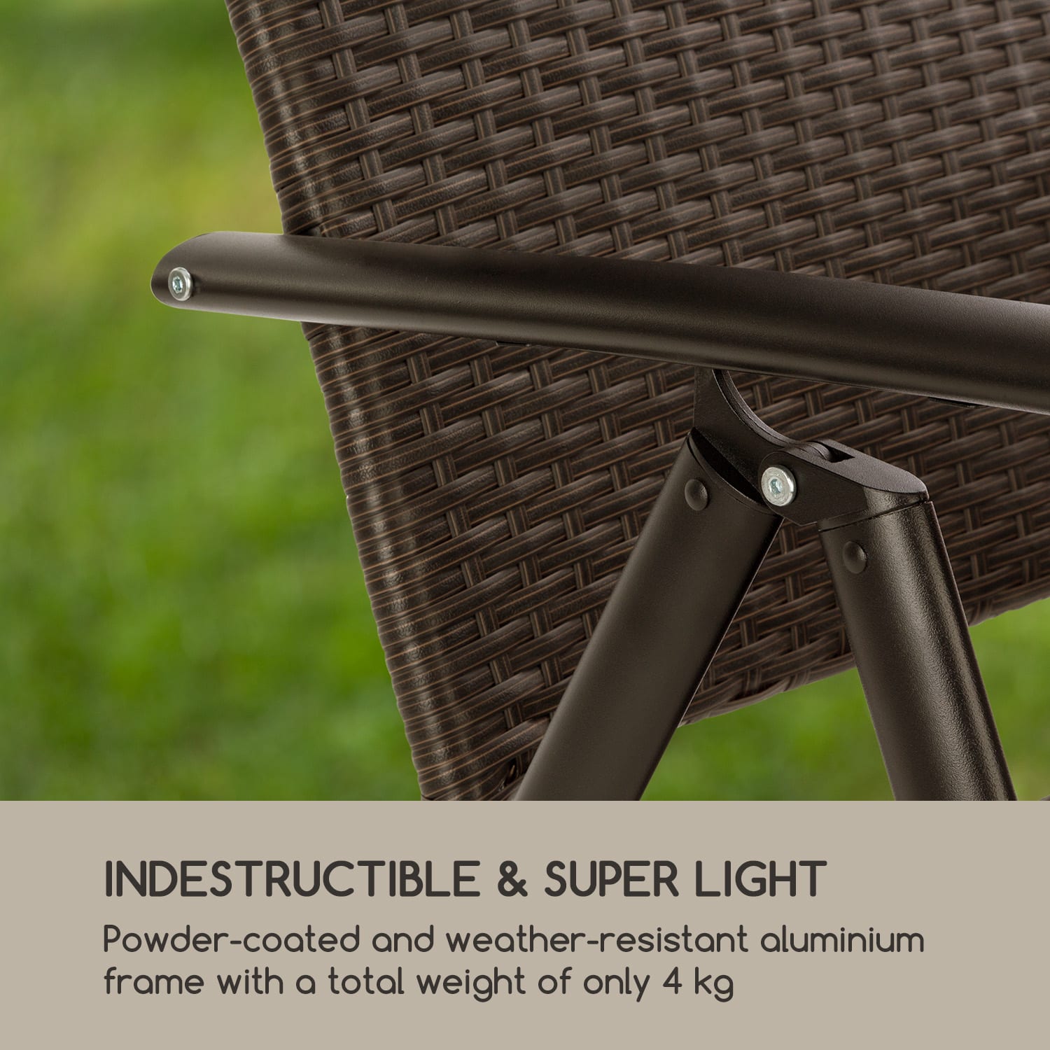 Blumfeldt Estoril, záhradná stolička, polyratan, hliník, 7 úrovní, skladacia, hnedá