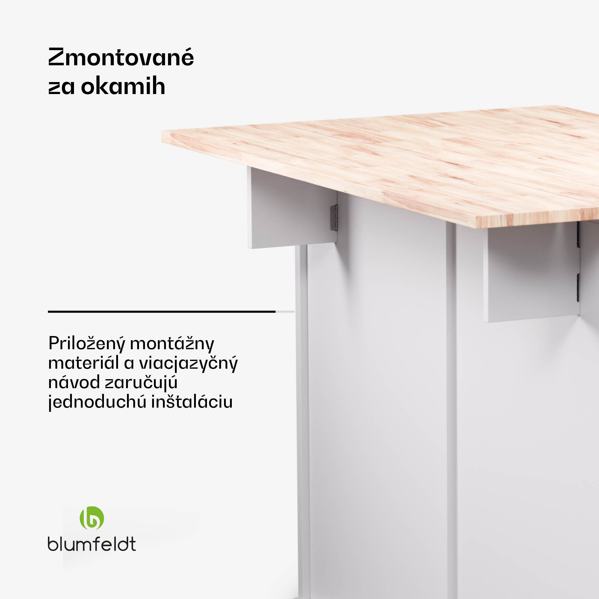 Blumfeldt Etsu, kuchynský ostrov, rozťahovacia pracovná doska, 2 zásuvky, 4 dvierka, možno použiť ako jedálenský stôl, úložný priestor, ľahko sa čistí