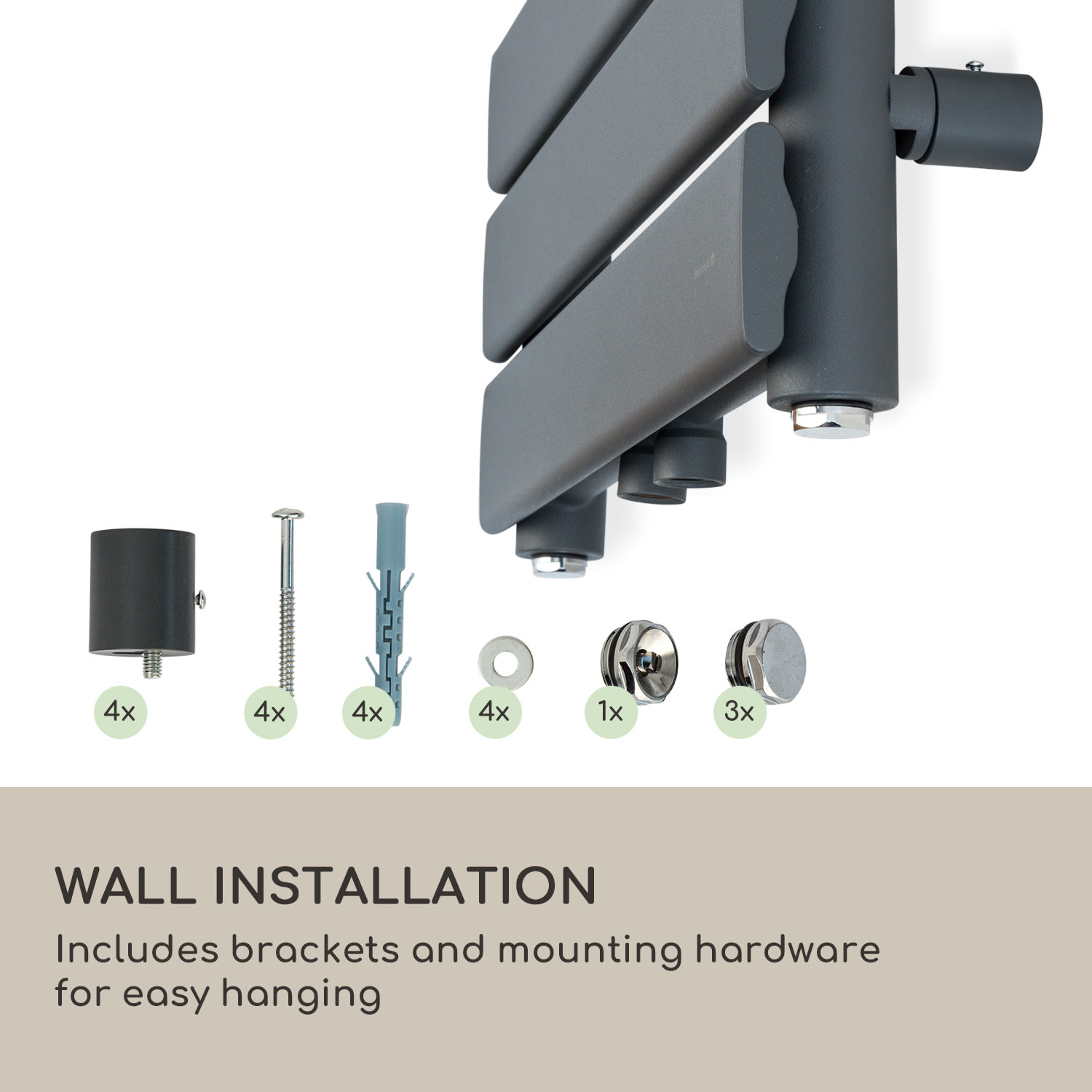 Útulné teplo pre domácnosť v modernom dizajne: radiátor Fairmont 80 x 45 od Blumfeldt nielenže prináša do kúpeľne príjemnú teplotu, ale aj pekne vyzerá.Rúrkový radiátor Fairmont 80 x 45 od Blumfeldt jednoducho integrujete do existujúceho teplovodného alebo diaľkového vykurovacieho systému a funguje aj s elektrickým ponorným ohrievačom alebo elektronickým termostatom. Spoľahlivo a rovnomerne ohreje miestnosti s rozlohou od 4 do 8 m². Pripojenie je veľmi jednoduché prostredníctvom prípojok v strede. Vďaka tomu dokáže Fairmont optimálne reagovať na mnohé konštrukčné podmienky. Potrebné nástenné konzoly sú tiež priamo súčasťou balenia. Stabilný systém rúrok z práškovo lakovaného kovu optimálne vedie a rozvádza teplo až do 70 °C a vytvára tak výhrevný výkon až 375 wattov.Pre ešte väčšiu tepelnú pohodu sú tu tri integrované stojany na zavesenie a ohrievanie uterákov. Vďaka plochému dizajnu 8 vykurovacích rebier sa radiátor veľmi ľahko a rýchlo čistí. Útulné teplo priamo po sprche alebo kúpeli s radiátorom Fairmont 80 x 45 od Blumfeldt – štýlový zážitok.