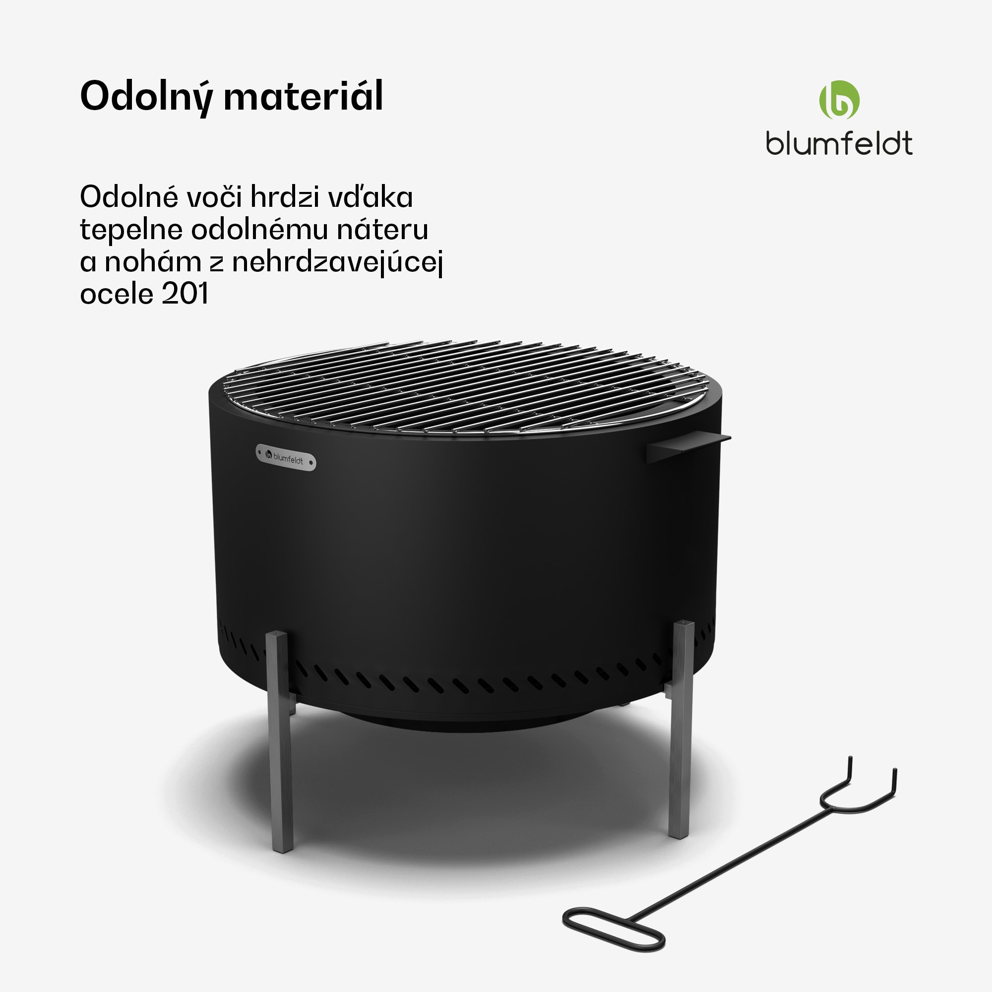 Blumfeldt Ignite Pure ohnisko, nízka dymivosť, grilovací rošt, nehrdzavejúca oceľ, prenosné, kryt proti dažďu, držadlá na prenášanie