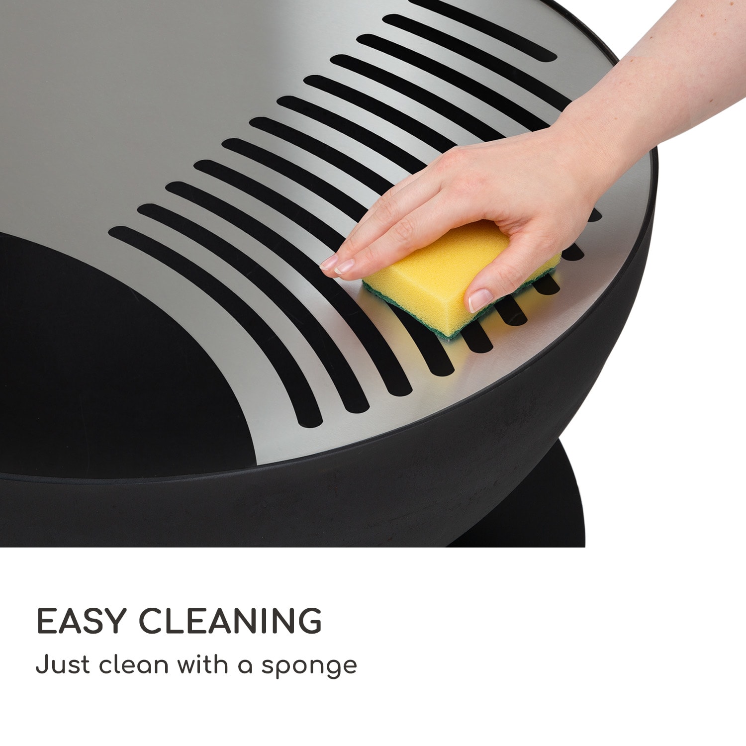 Vychutnaj si šťavnaté, pečené dobroty v kruhu rodiny a priateľov pri okrúhlom ohnisku s grilom blumfeldt Savage 2.0 a zaži neprekonateľne hrejivú atmosféru otvoreného ohňa pod hviezdnatou oblohou. Exkluzívne ohnisko môžeš zapáliť klasicky s dreveným uhlím alebo palivovým drevom, ktoré sa dá prakticky skladovať v spodnej časti grilu. Okrem obrovského pohodlia pri grilovaní slúži ohnisko súčasne ako veľký zdroj tepla – vďaka tomu si môžeš užiť večery vonku dokonca aj na jeseň.Robustné ohnisko s priemerom 60 cm je vyrobené kompletne z ocele, vďaka čomu má mimoriadne dlhú životnosť a je odolné proti poveternostným vplyvom. Konštrukcia je chránená pred vodou a mrazom a napriek robustnej hrúbke materiálu 2,75 mm je ohnisko pomerne ľahké. Na dobre sediaci grilovací kruh z nehrdzavejúcej ocele sa zmestia všetky druhy dobrôt a ty môžeš relaxovať a pozorovať plamene uprostred, zatiaľ čo grilované jedlo sa pečie.Okrúhle ohnisko s grilom blumfeldt Savage 2.0: praskajúca romantika pri táboráku orámovaná grilovanými pochúťkami.