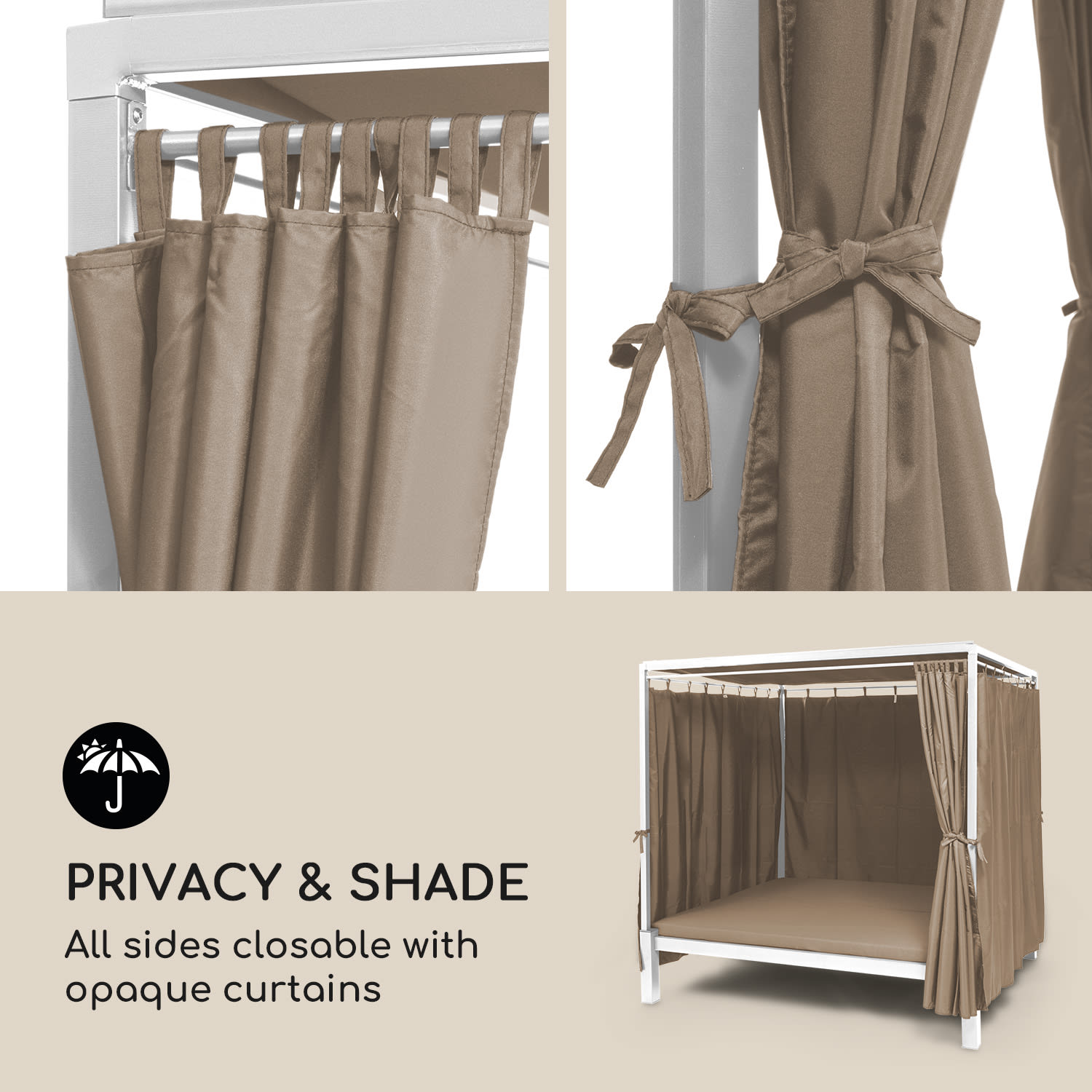 Blumfeldt Senator Lounge, záhradné lehátko, 188 x 208 x 205 cm, strieška proti slnku, taupe