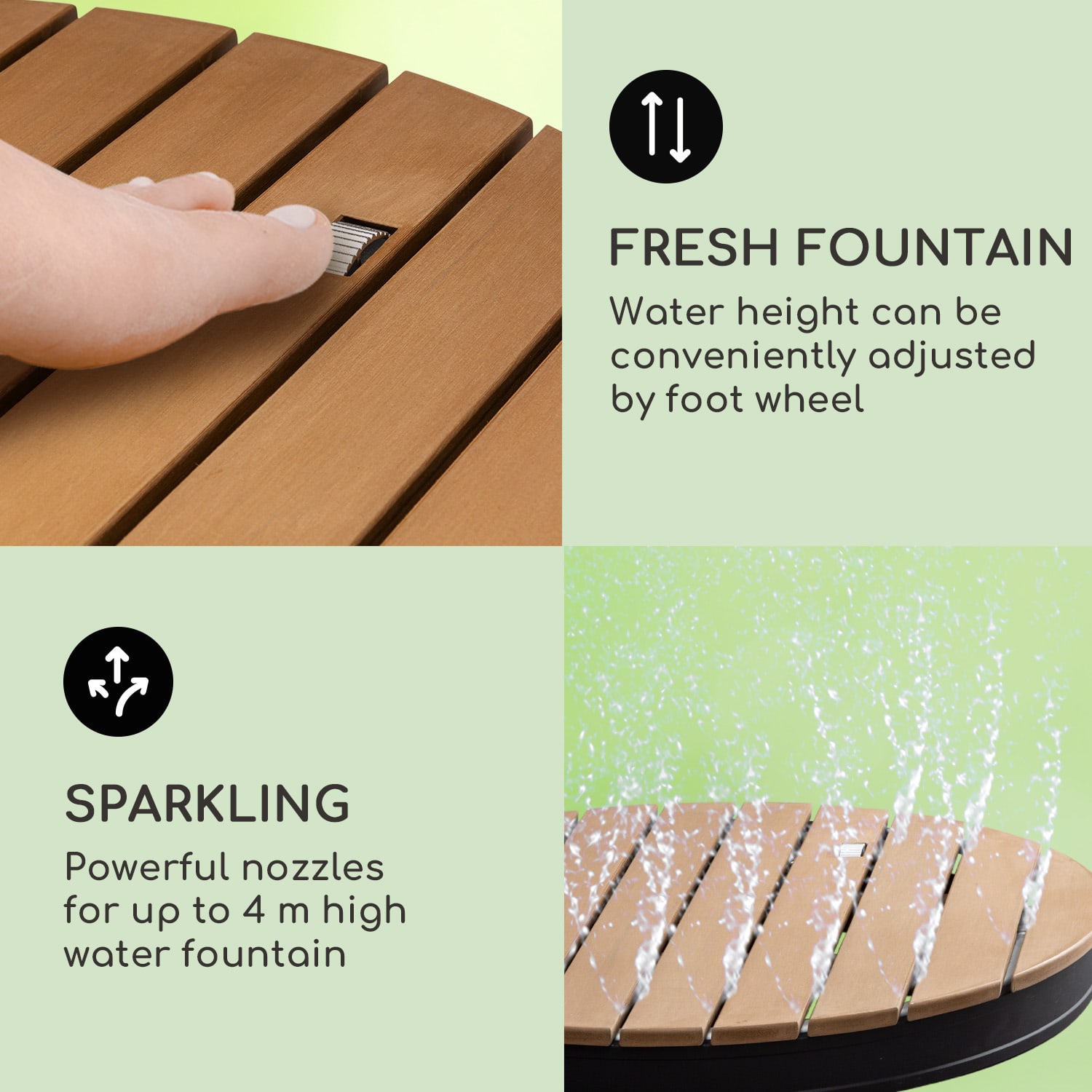 Do studenej vody: podlahová sprcha Blumfeldt Sumatra Breeze prináša chladné osvieženie počas horúcich letných dní.Tento rok si v záhrade úplne jednoducho zachováte chladnú hlavu. Postará sa o to vonkajšia sprcha Blumfeldt Sumatra Breze, jednoduchým a efektívnym spôsobom. Osviežujúci zázrak jednoducho pripojíte na záhradnú hadicu a zábava môže začať. Nožné nastavovacie koliesko nielen zapína vodu, ale tiež reguluje výšku fontán až do 4 metrov. Sprcha ochladzuje hneď dvakrát, pretože voda strieka zo zeme. Najprv sa ostriekať zospodu a potom ešte raz jemne z vrchu. Blumfeld Sumatra Breeze sa perfektne hodí ako sprcha do sauny – predovšetkým preto, lebo si ľahko nájde svoje miesto aj v obmedzenom priestore. Aby radosť z osvieženia bola aj stála, o to sa stará šikovný mix robustných materiálov. Základňa sprchy je z eloxovaného hliníka a zavŕšená je protišmykovým povrchom z WPC, Wood-Plastic-Composite. Nepozostáva ani zo 60% z dreva a tým chráni prírodné zdroje, ale je aj chránená proti plesniam, mrazu, vode a UV žiareniu a dá sa úplne jednoducho čistiť.Leto, slnko, ochladenie. So záhradnou sprchou Blumfeldt Sumatra Breeze si osviežujúcu zábavu z vodou užijete aj v malých záhradách.