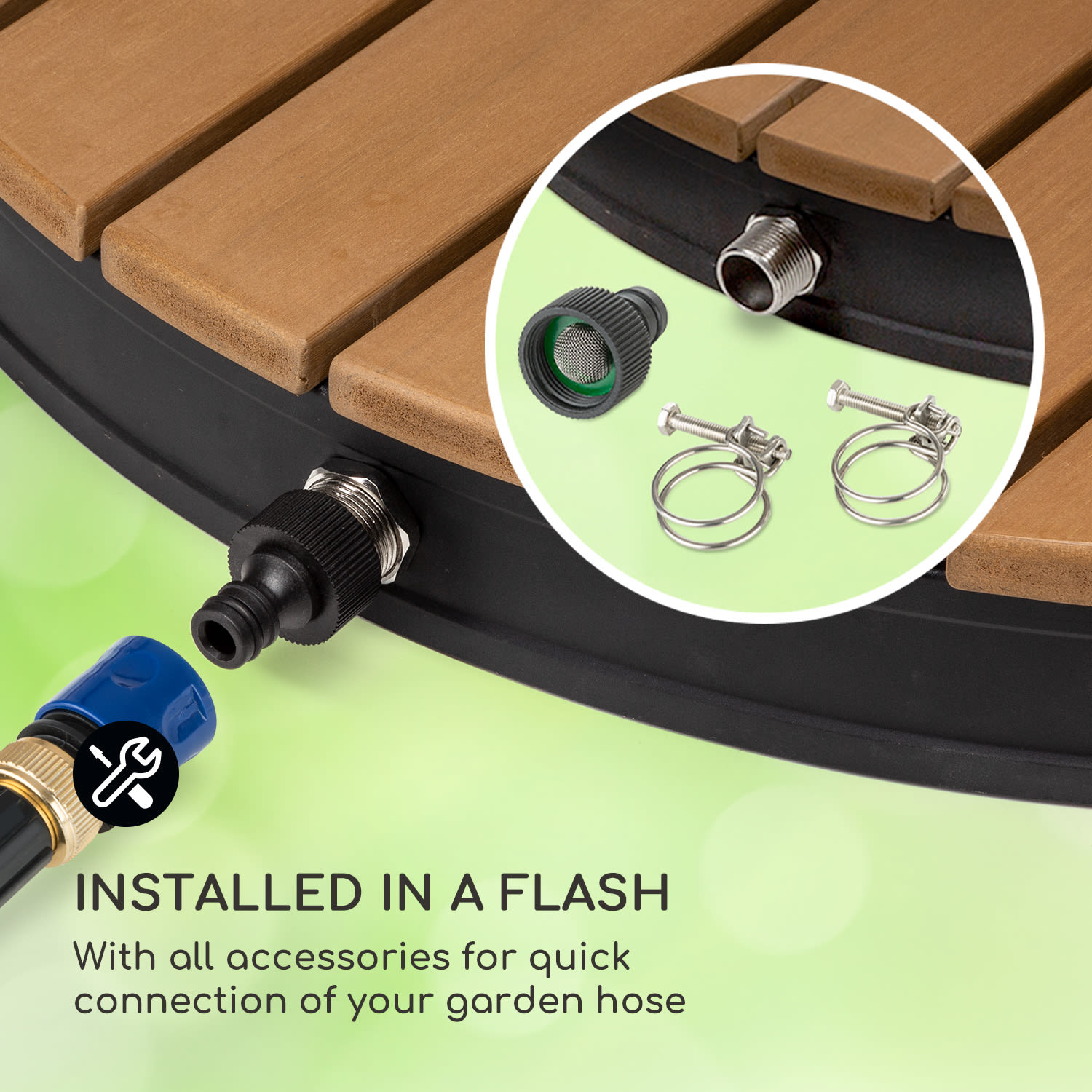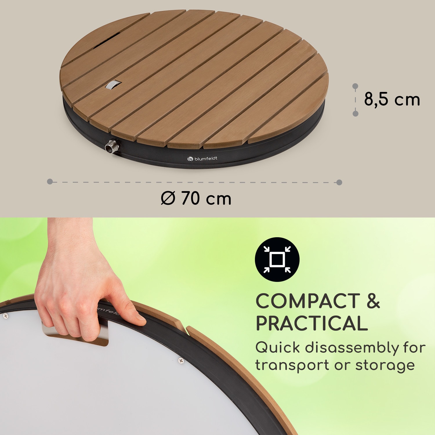 Blumfeldt Sumatra Breeze Round, záhradná sprcha, WPC, hliník, Ø70, 4cm, okrúhla
