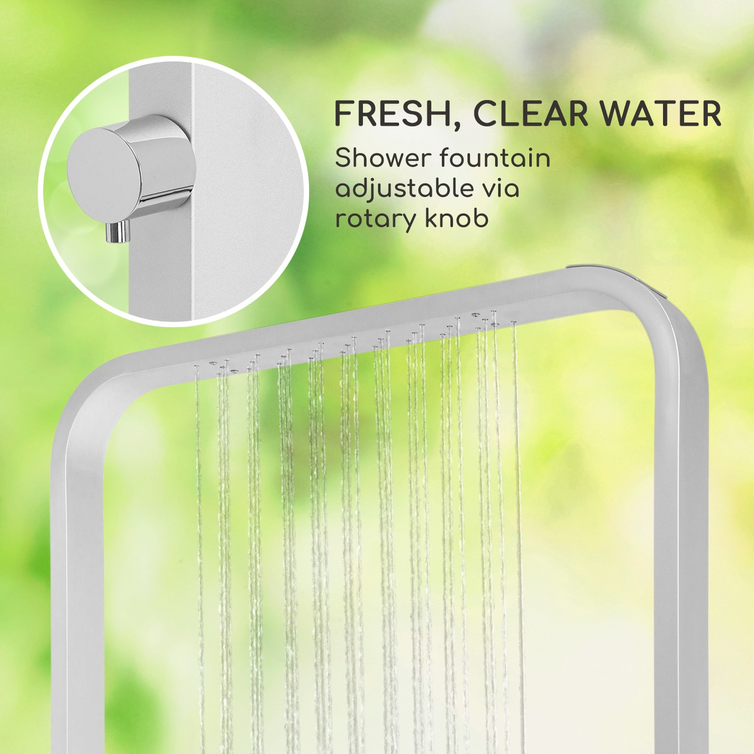 Do studenej vody: podlahová sprcha Blumfeldt Sumatra Breeze prináša chladné osvieženie počas horúcich letných dní.Tento rok si v záhrade úplne jednoducho zachováte chladnú hlavu. Postará sa o to vonkajšia sprcha Blumfeldt Sumatra Breze, jednoduchým a efektívnym spôsobom. Osviežujúci zázrak jednoducho pripojíte na záhradnú hadicu a zábava môže začať. Nožné nastavovacie koliesko nielen zapína vodu, ale tiež reguluje výšku fontán až do 4 metrov. Sprcha ochladzuje hneď dvakrát, pretože voda strieka zo zeme. Najprv sa ostriekať zospodu a potom ešte raz jemne z vrchu. Blumfeld Sumatra Breeze sa perfektne hodí ako sprcha do sauny – predovšetkým preto, lebo si ľahko nájde svoje miesto aj v obmedzenom priestore. Aby radosť z osvieženia bola aj stála, o to sa stará šikovný mix robustných materiálov. Základňa sprchy je z eloxovaného hliníka a zavŕšená je protišmykovým povrchom z WPC, Wood-Plastic-Composite. Nepozostáva ani zo 60% z dreva a tým chráni prírodné zdroje, ale je aj chránená proti plesniam, mrazu, vode a UV žiareniu a dá sa úplne jednoducho čistiť.Leto, slnko, ochladenie. So záhradnou sprchou Blumfeldt Sumatra Breeze si osviežujúcu zábavu z vodou užijete aj v malých záhradách.