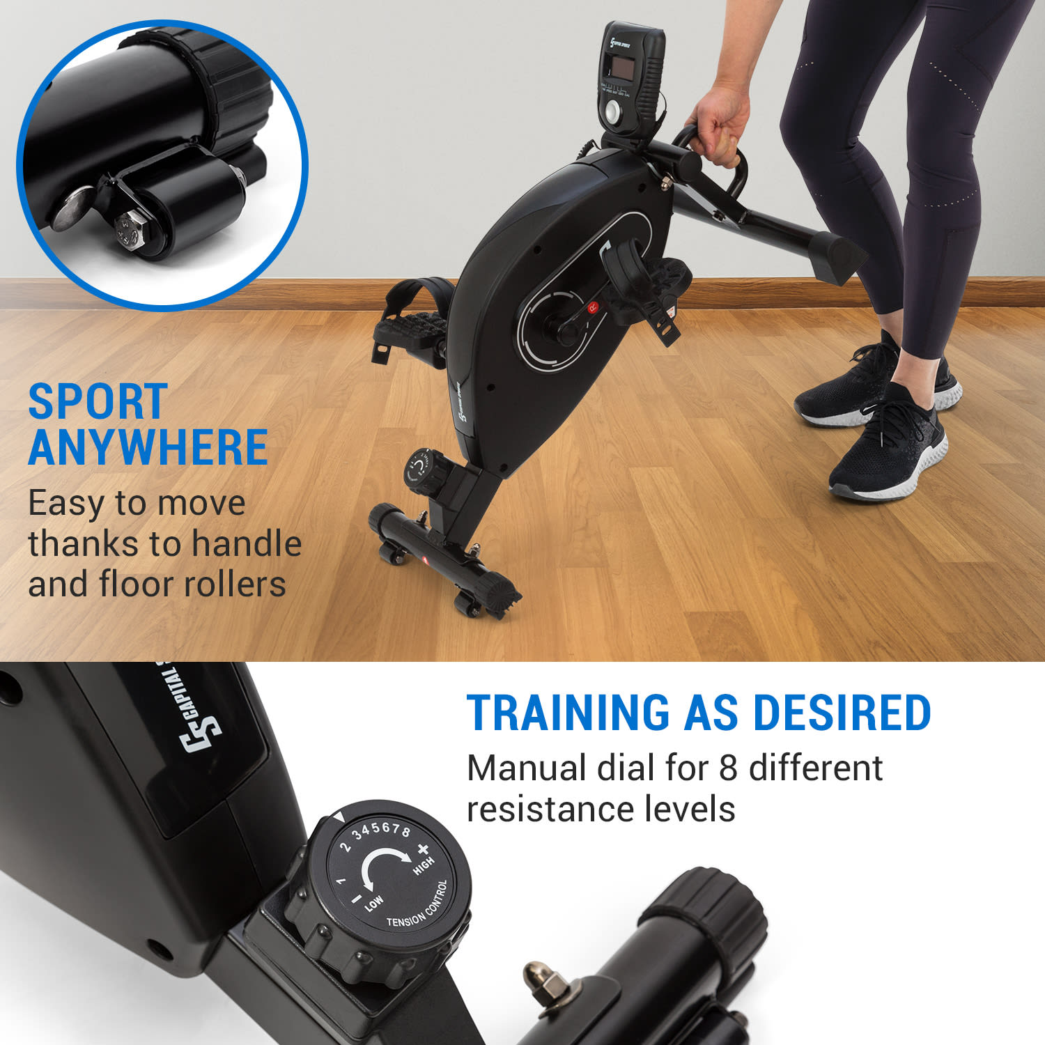 Capital Sports Crius, mini bike, 8-stupňový odpor, do kancelárie alebo na doma, tréningový počítač