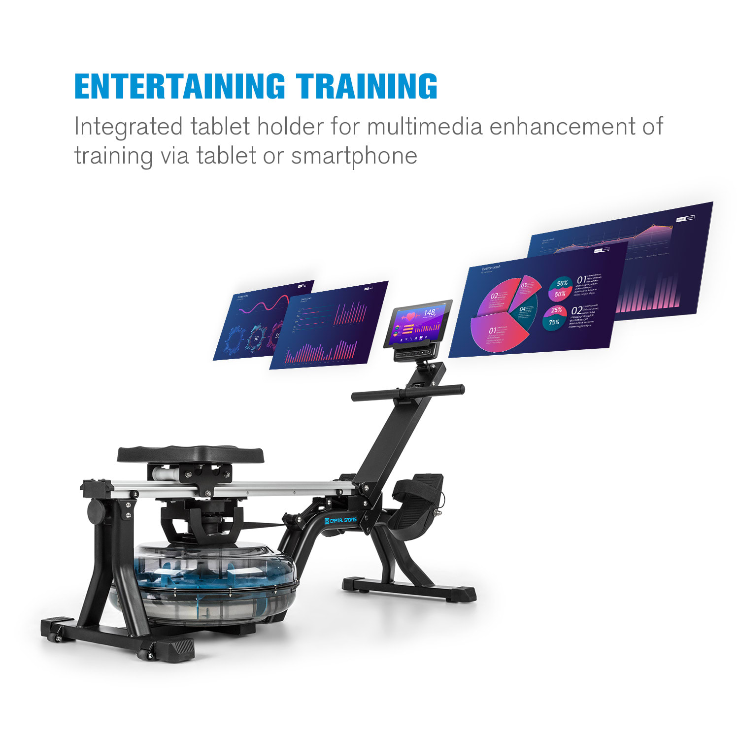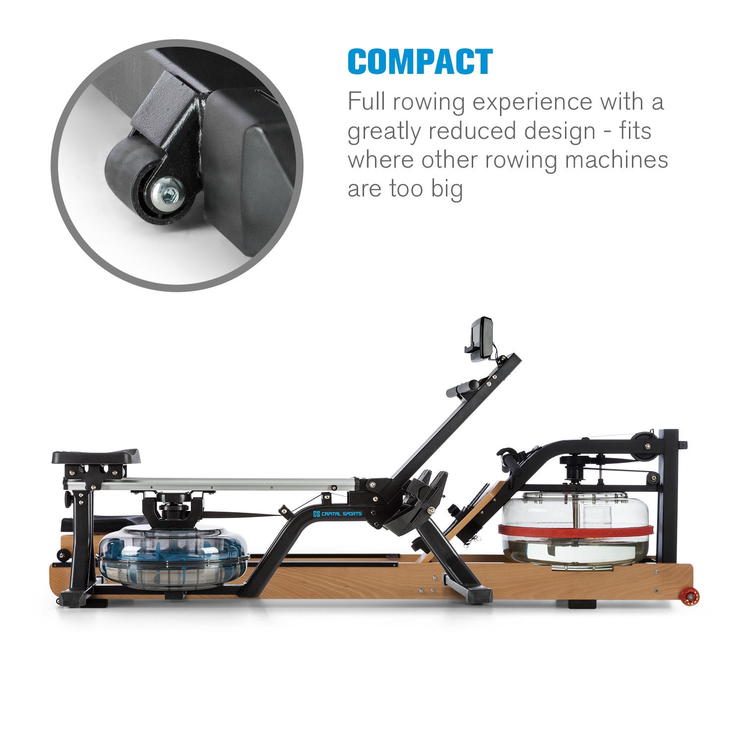 Capital Sports Flow M1, vodný veslovací trenažér, priestorovo úsporný, tréningový počítač, do 150 kg