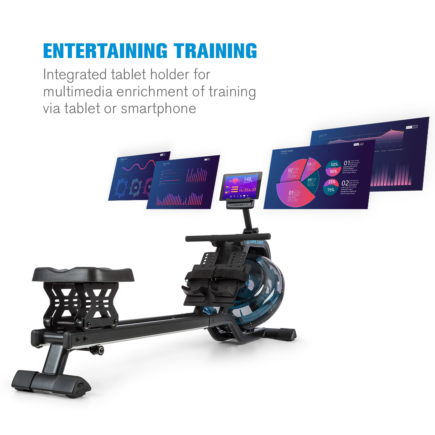 Capital Sports Flow M2, vodný veslársky trenažér, s tréningovým počítačom, do 150 kg