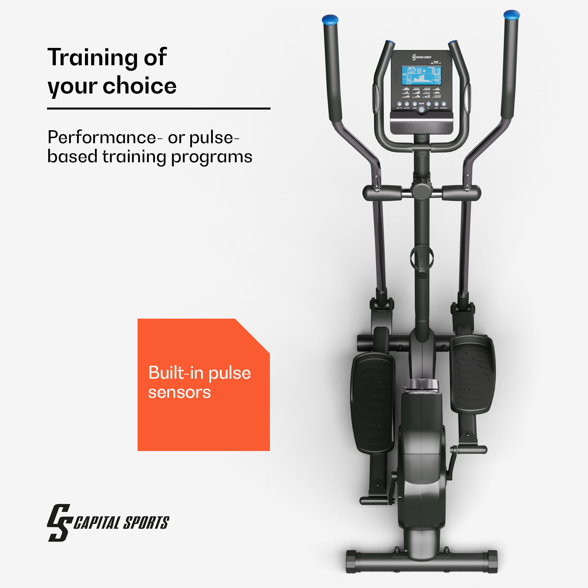 Capital Sports Helios Cardiobike, eliptický trenažér, Bluetooth, aplikácia, 32-úrovňový magnetický odpor