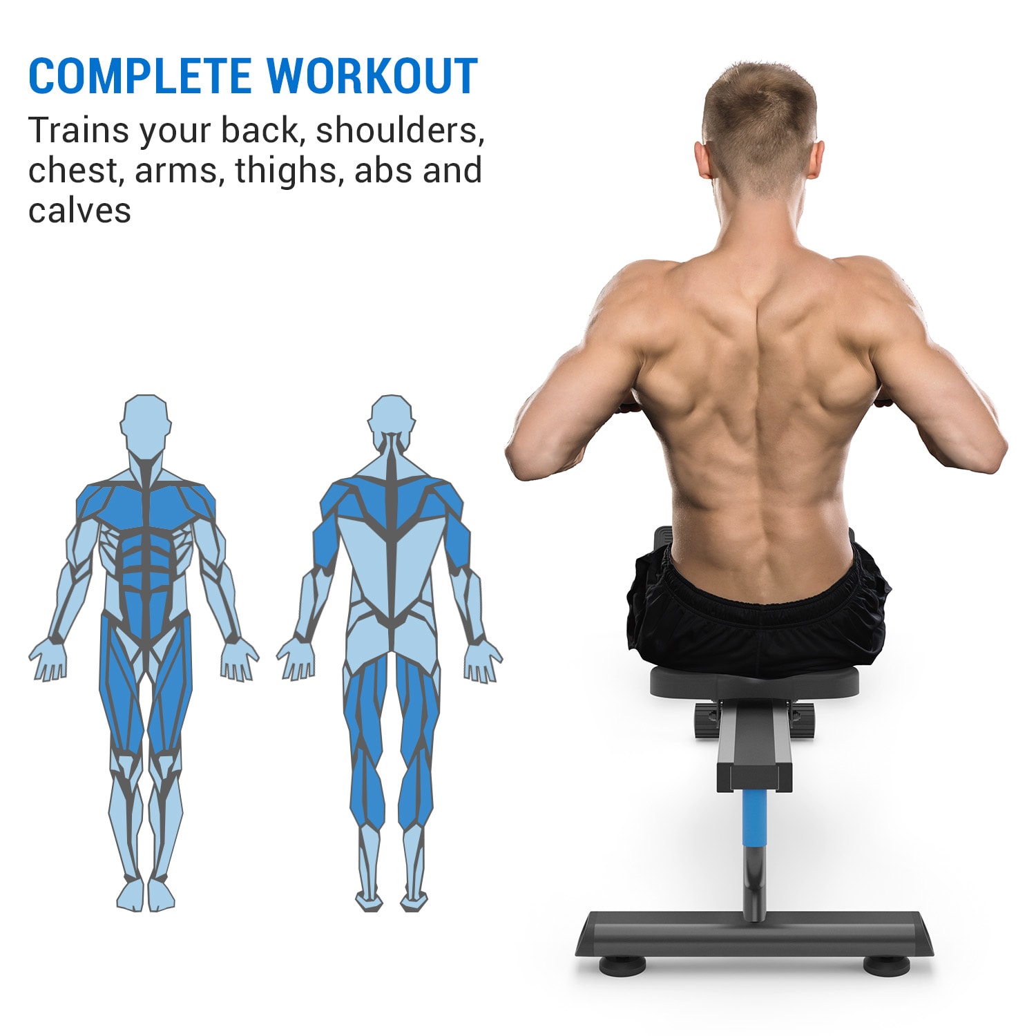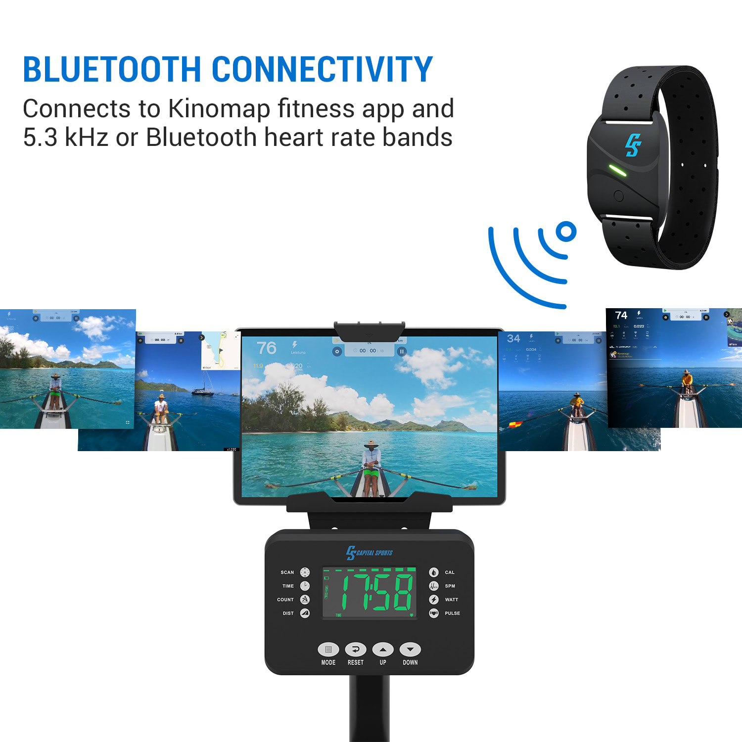 Tréning celého tela Veslovací trenažér Helios od CAPITAL SPORTS umožňuje vysoko efektívny a pre kĺby šetrný tréning celého tela pre športovcov do výšky 2 m a s hmotnosťou do 150 kg. Veslovacia lavica Helios od CAPITAL SPORTS vám sľubuje jedinečný zážitok z domáceho cvičenia. Srdcom vyváženého a ku kĺbom šetrného tréningu je kvalitný zotrvačník, ktorý pomocou nášho oceneného systému magnetického odporu (MagResist) vzdoruje vášmu veslovaniu vďaka 8 stupňom magnetického odporu. Takto získate pocit, že pádlujete cez pokojné more alebo proti silnému prúdu. Vďaka tichým hliníkovým vodiacim lištám, na ktorých je komfortné sedadlo, je tréning úplne tichý a neruší susedov alebo spolubývajúcich a môžete cvičiť každý deň, vo dne i v noci. Na sledovanie vášho tréningu má veslovací trenažér Helios od CAPITAL SPORTS k dispozícii mini počítač s LED displejom, na ktorom nielenže môžete sledovať pádlovanie, prejdenú vzdialenosť alebo spálené kalórie, ale aj použitú silu. Vďaka Bluetooth je cez aplikáciu kompatibilný s každým 5,3 kHz pulzným pásom podporujúcim bluetooth. O zábavu pri tréningu sa stará držiak na tablet, takže si môžete užívať vaše obľúbené seriály alebo hudbu alebo sa môžete cez Kinomap pripojiť na ďalšie fitness aplikácie. Opierky nôh so suchým zipsom zaisťujú bezpečné držanie. Po tréningu môžete veslovací trenažér úplne jednoducho zložiť a pomocou posuvných koliesok jednoducho premiestniť – takto sa veslovací trenažér Helios vmestí do každého bytu.Nie je to trenažŕ ako každý iný: veslovací trenažér Helios od CAPITAL SPORTS spája tichý, prirodzený a ku kĺbom šetrný tréning s kvalitným spracovaním a štýlovým dizajnom.