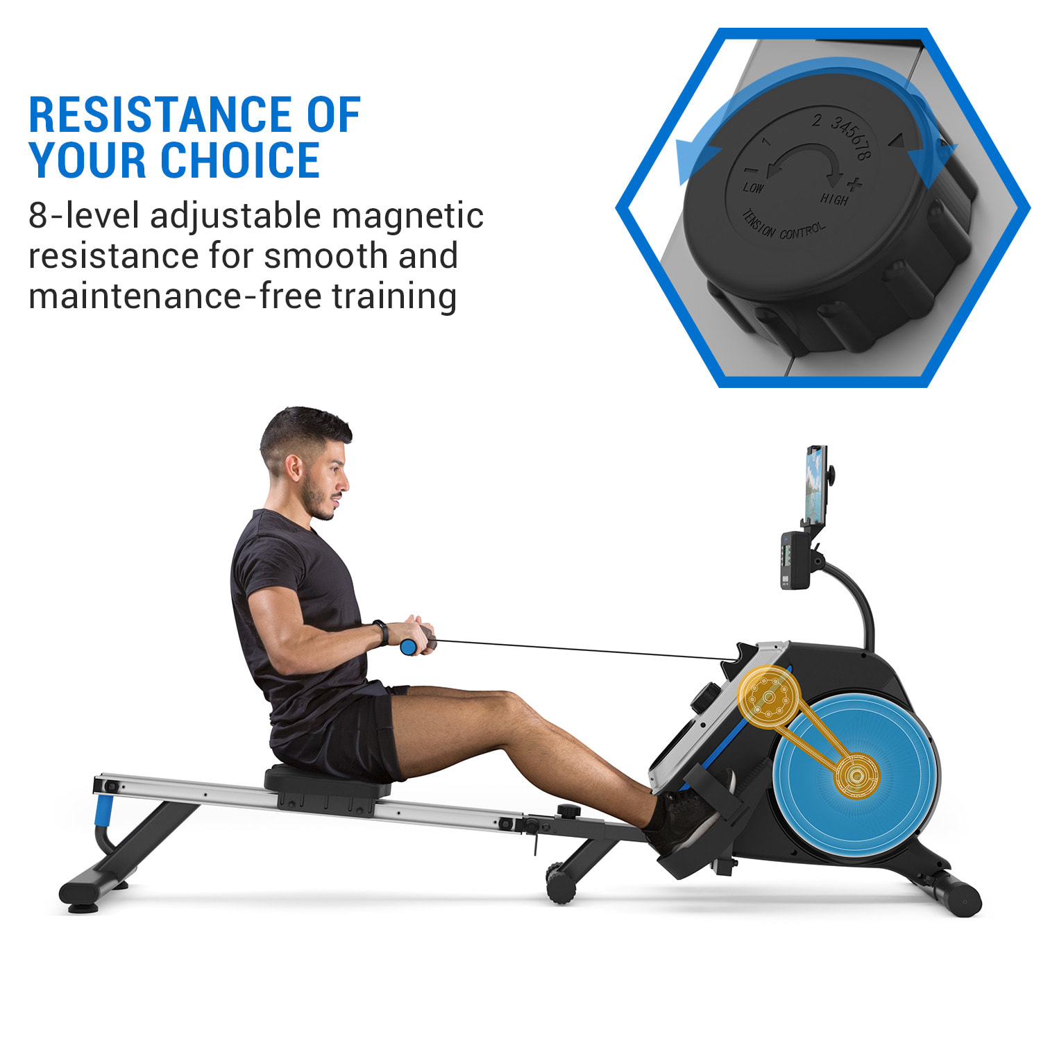 Capital Sports Helios, magnetický veslovací trenažér, LED displej, 8 úrovní, hliník