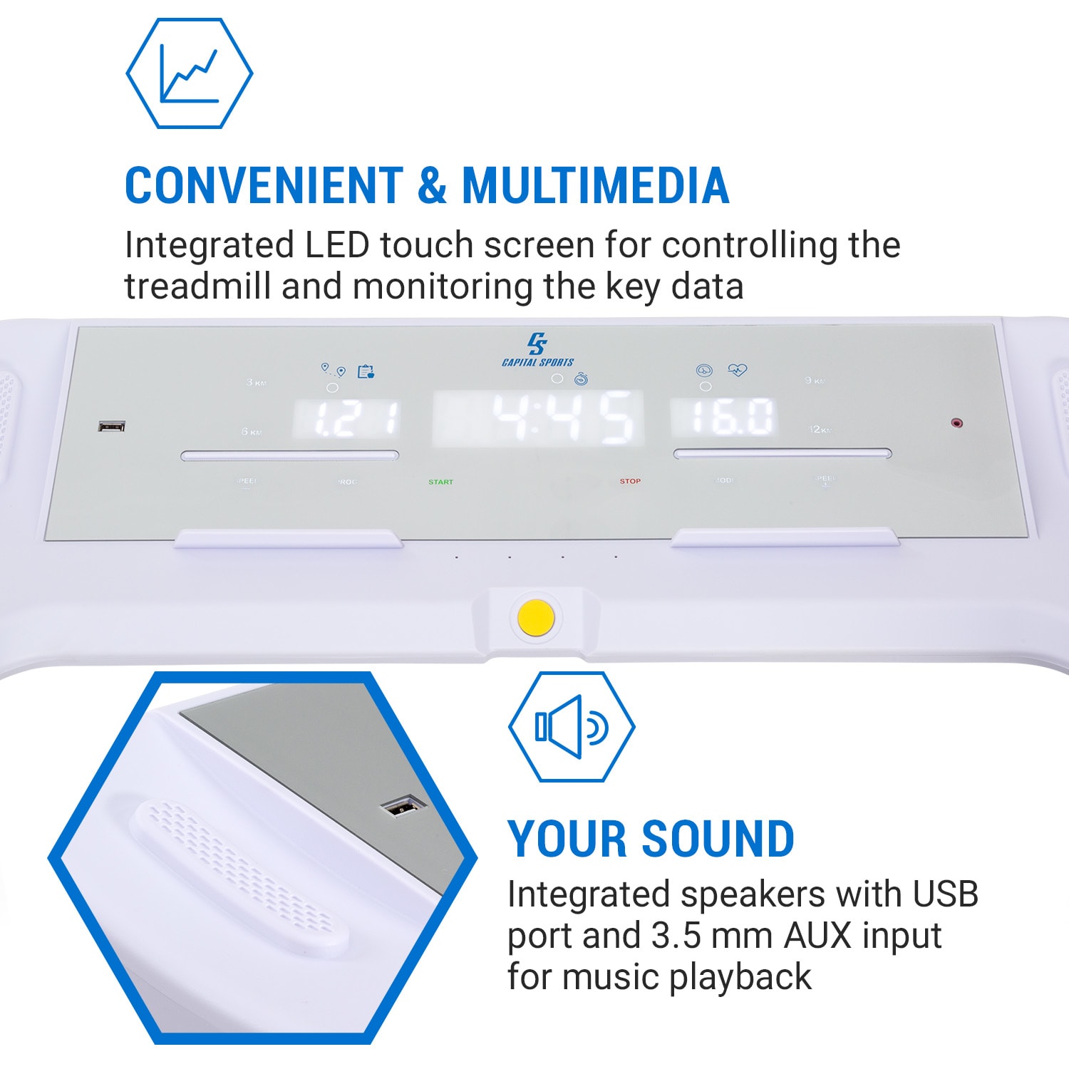 Capital Sports Infinity Edge, bežecký pás, 1,5 HP, Bluetooth, LED dotykový displej