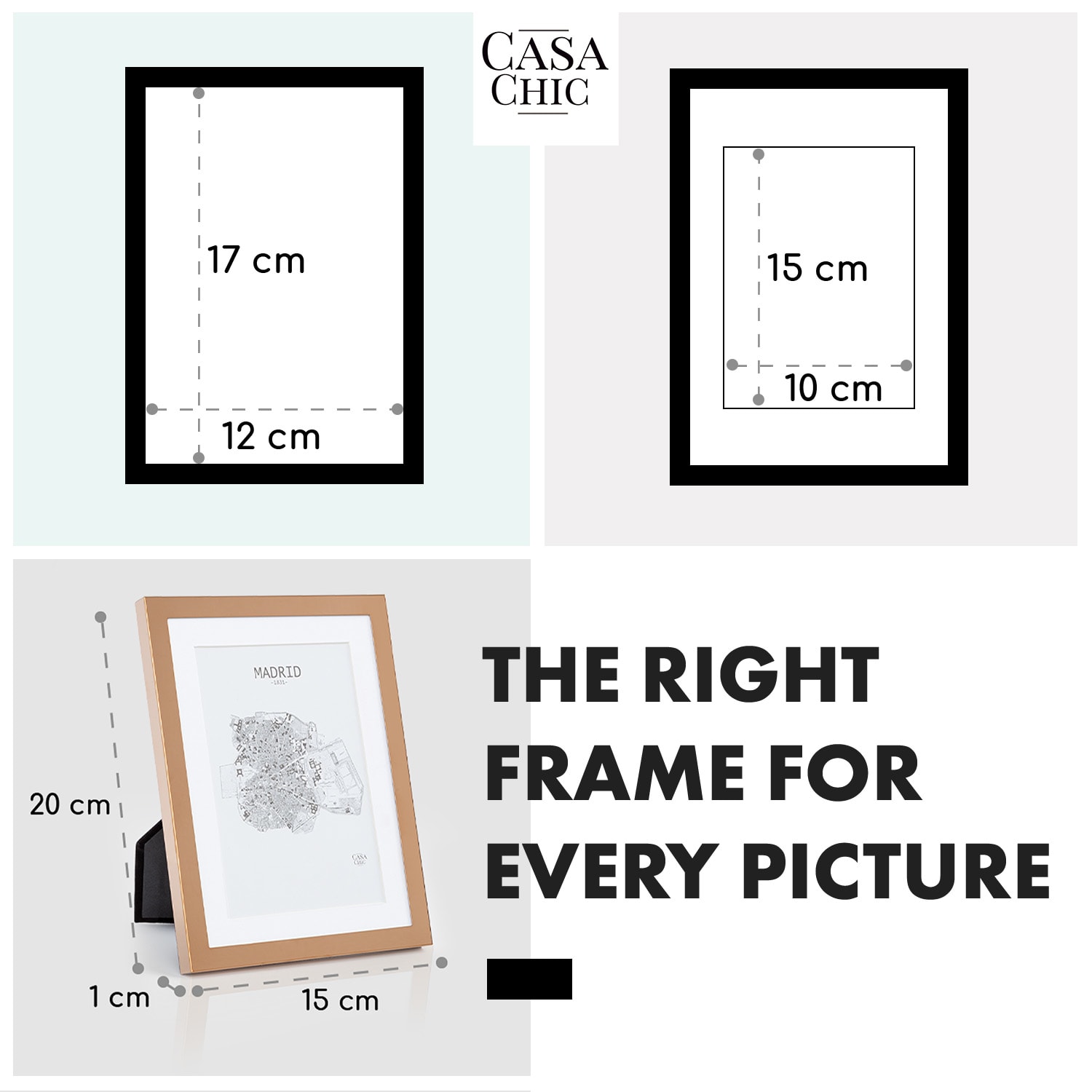 Rámčeky na obrazyBerwick od Casa Chic by blumfeldt vnesú do vášho domova novú eleganciu. Šikovne prezentujte svoje obľúbené fotografie – s paspartou alebo bez nej: ako stojan na výšku alebo na šírku alebo ako klasický nástenný rám. Za sklenenou tabuľou sa každý obrázok stane lákadlom pre oči. Kvalitný držiak na zadnej strane umožňuje mimoriadne jednoduché vkladanie alebo výmenu obrázkov. Každý deň vám vyčarí úsmev na tvári: V štýlových fotorámikoch Berwick nájdu vaše spomienky krásny domov.