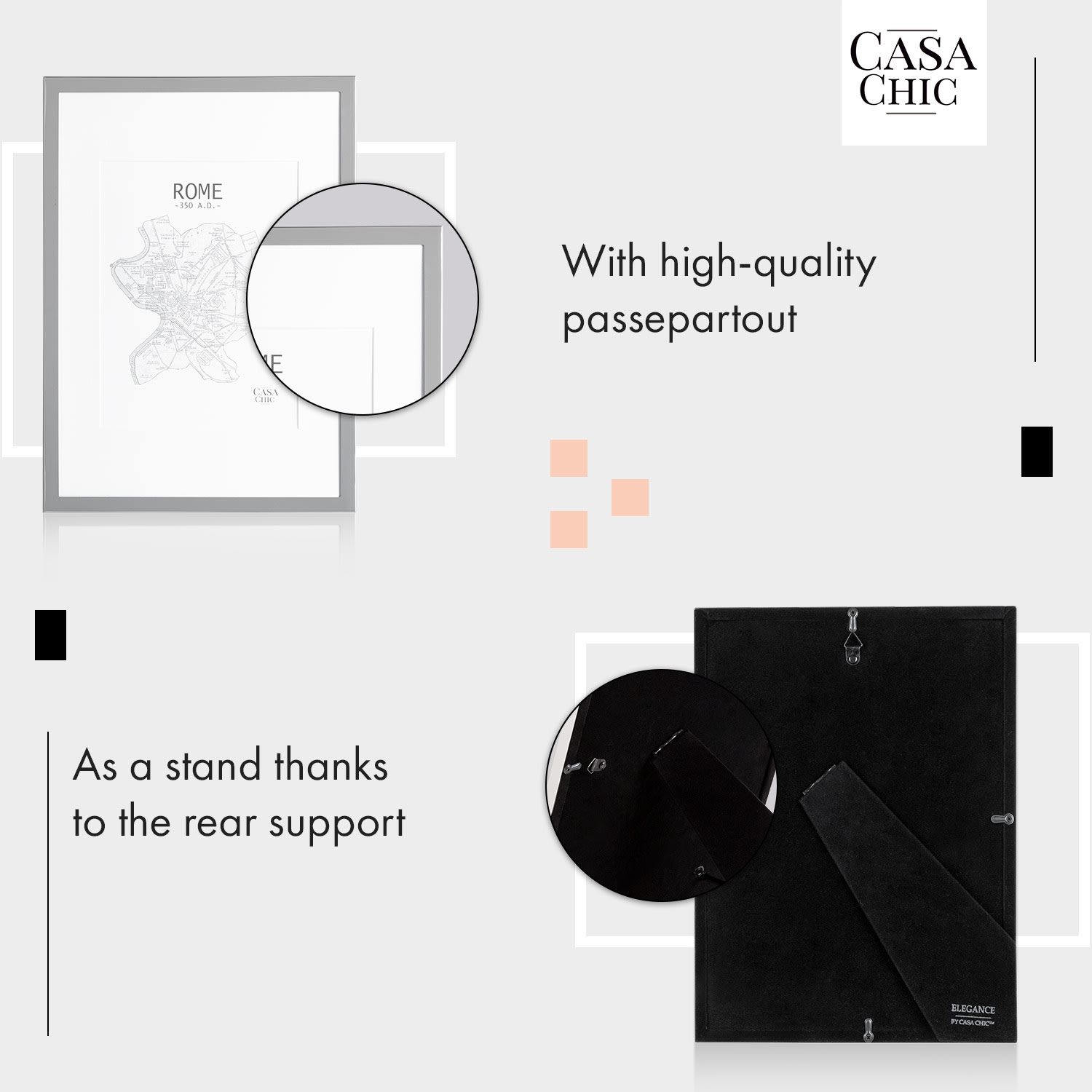 Casa Chic Berwick, rám na obrázky, obdĺžnikový, fotky DIN A4, pasparta, sklo