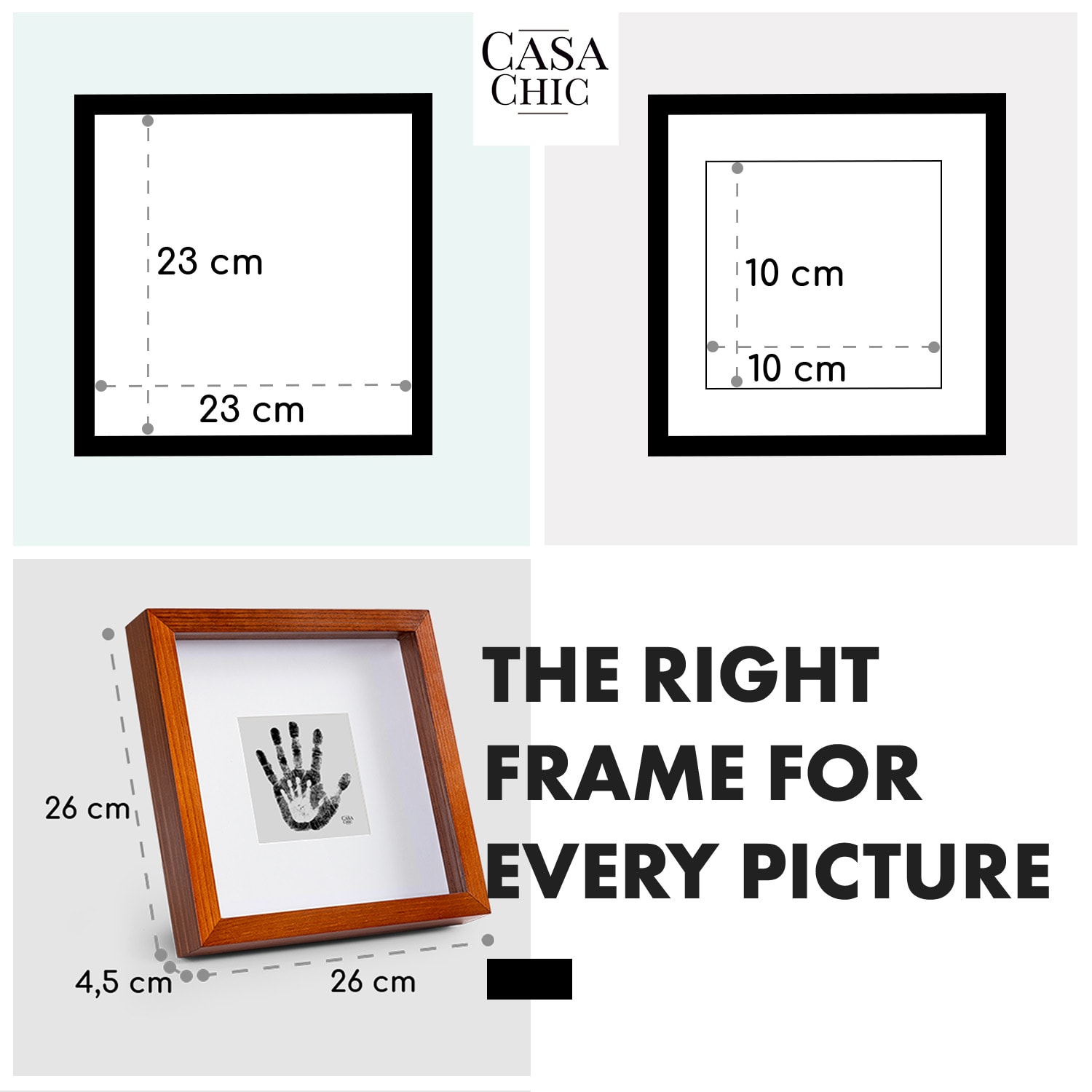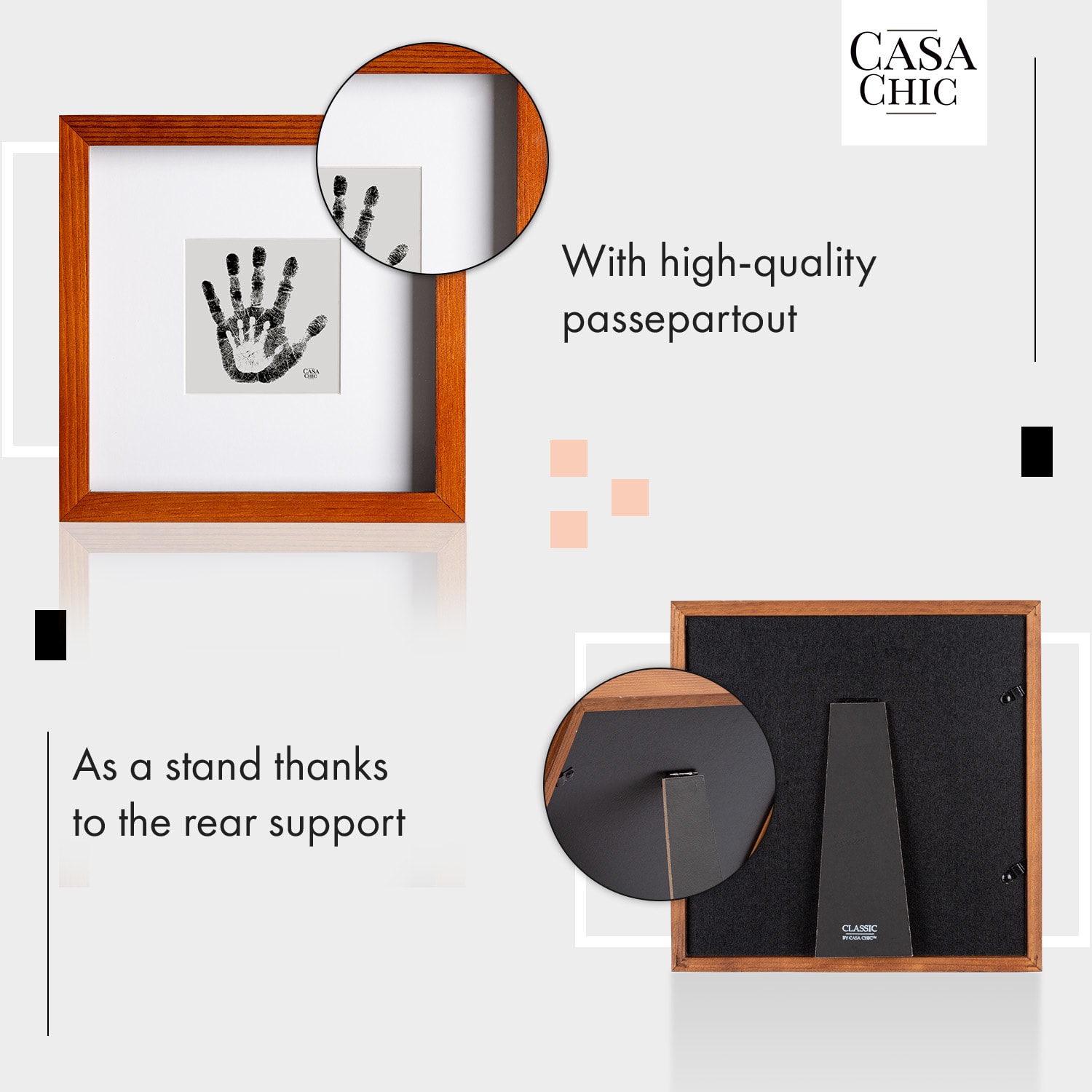 Casa Chic Camden, rám na obrázky, 23 x 23 cm a 10 x 10 cm, pasparta, pravé drevo