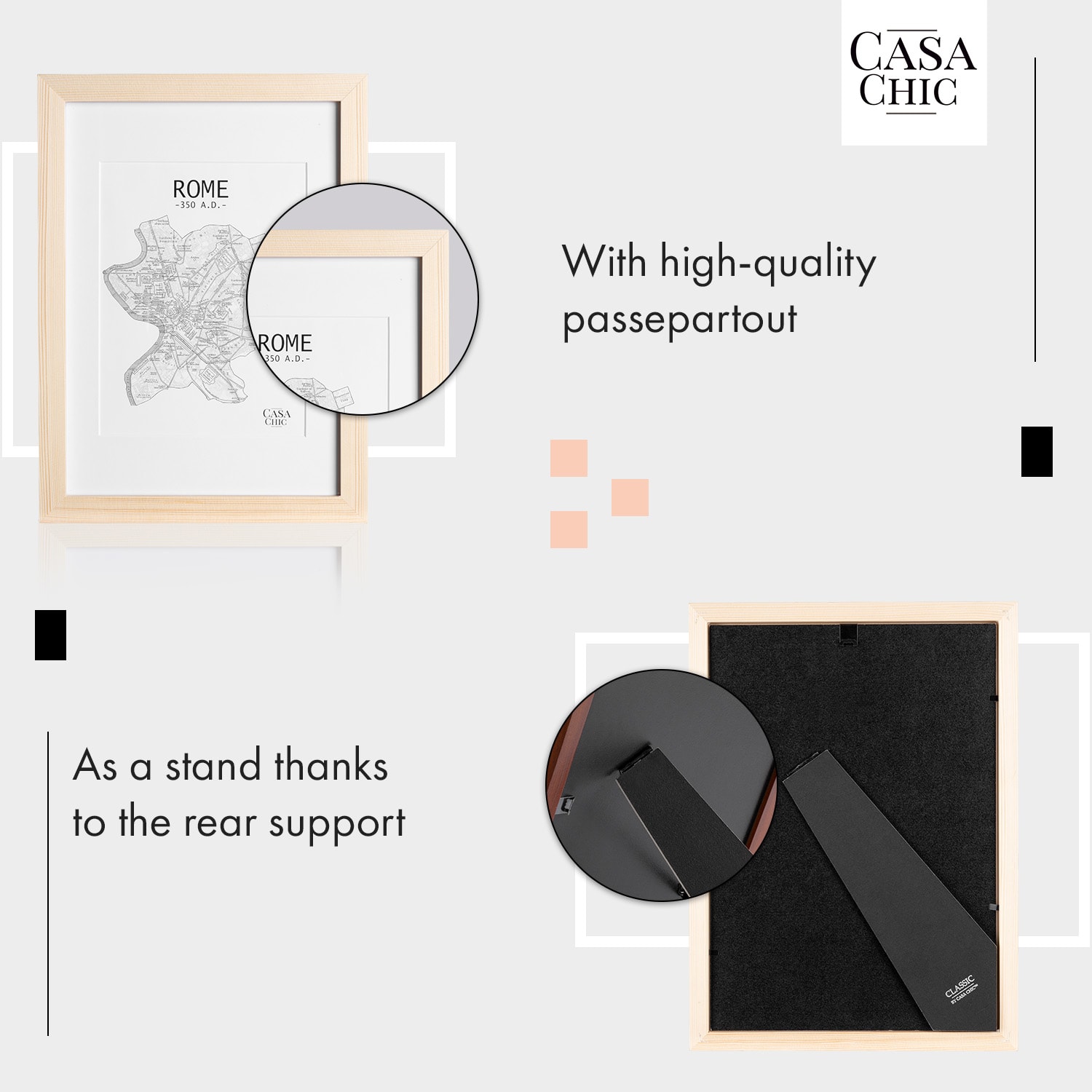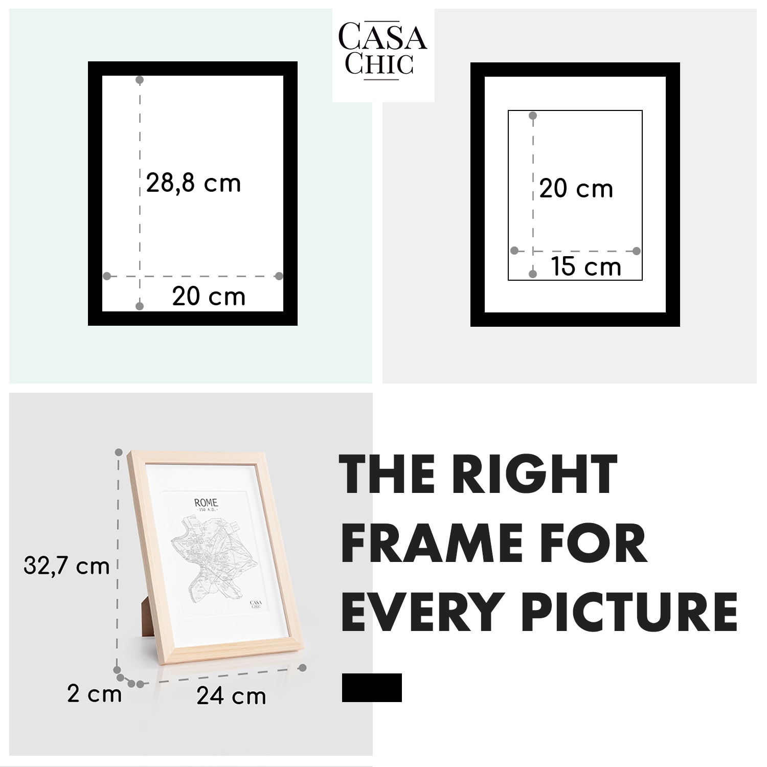 Casa Chic Edinburgh, rám na obrázky, obdĺžnikový, A4 fotky 28,8 x 20 cm, pasparta, pravé drevo