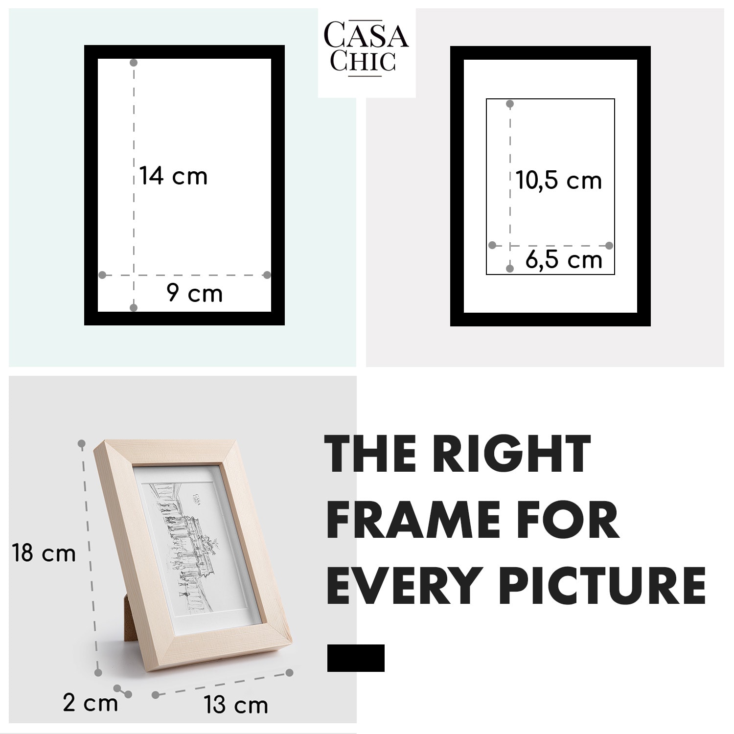 S jednoduchým fotorámom z pravého dreva Edinburgh od Casa Chic by blumfeldt zvýrazníte vaše fotky a obrázky vo formáte na výšku, ako aj na šírku. Vytvorte si krásne nástenné koláže alebo naaranžujte svoje obľúbené fotografie na príborník alebo poličku. S rámom Edinburgh ste flexibilní. Priložená pasparta ponecháva výber vhodnej obrazovej časti na vás. Jeho široký profil mu dodáva luxusný kontrast a predná strana zo skla chráni pred prachom a nečistotami.Jednoducho si zo svojich fotografií, obrázkov alebo umeleckých výtlačkov urobte viac: Fotorámik Edinburgh od Casa Chic by blumfeldt vám to umožní.