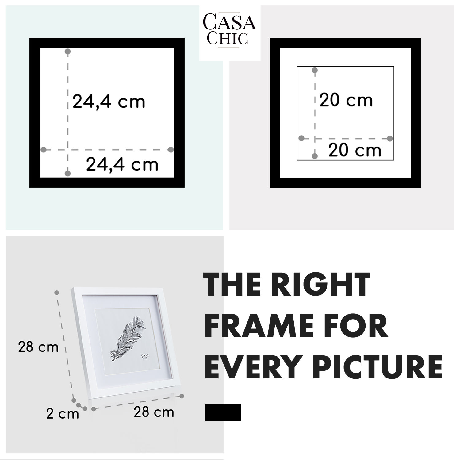 Casa Chic Everton, rám na obrázky, štvorcový, fotky 24,4 x 24,4 cm, pasparta, sklo