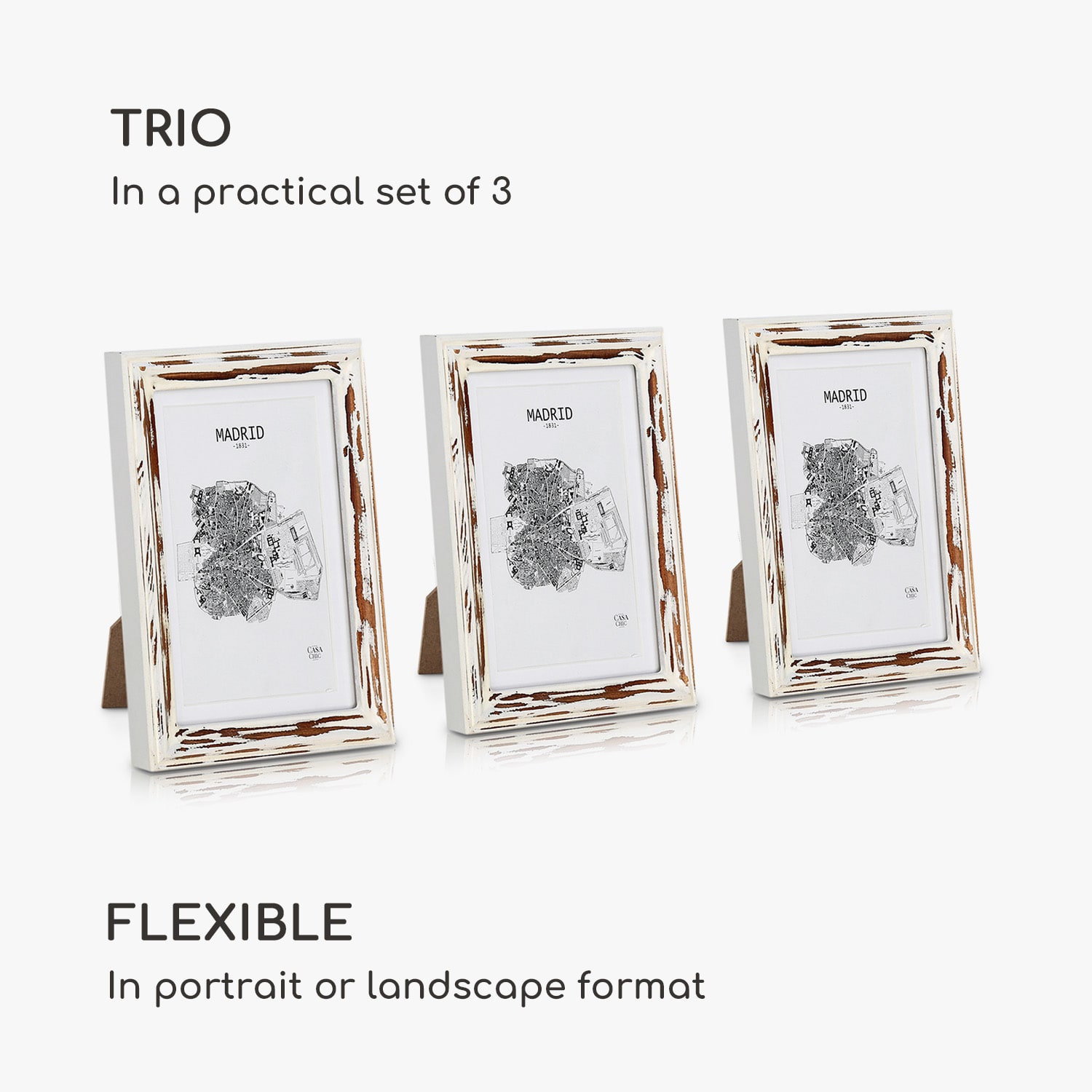 Casa Chic Lancaster, rámy na obrázky, obdĺžnikové, sada 3 rámov, fotky 17 x 12 cm, pasparta, drevo