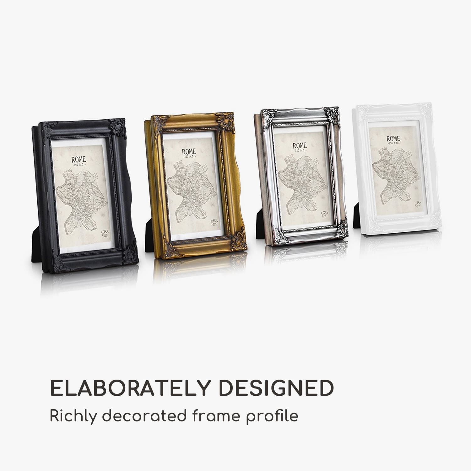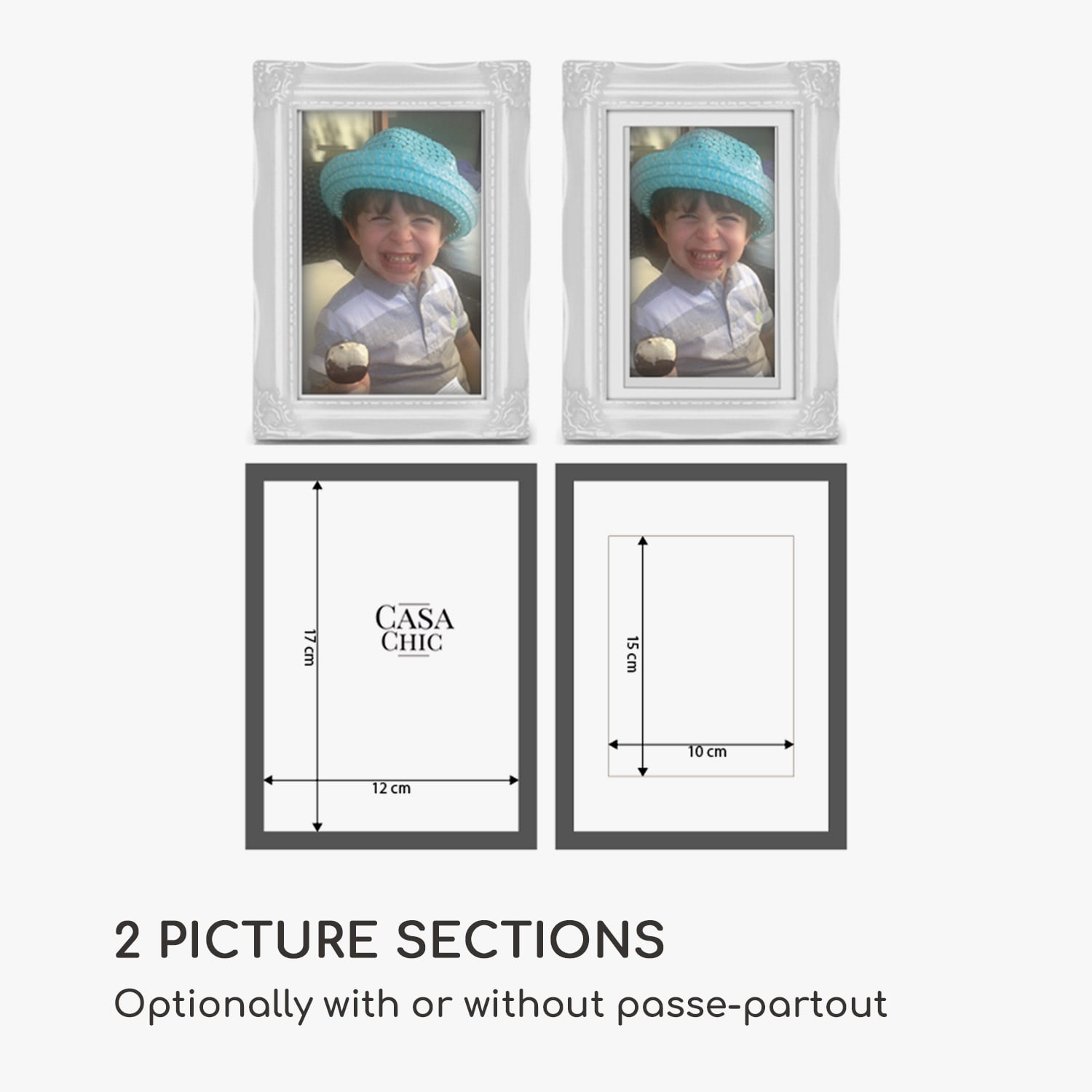 Casa Chic Regent, obrazový rám, obdĺžnikový, 17 × 12 cm fotky, pasparta, sklo, rokoko