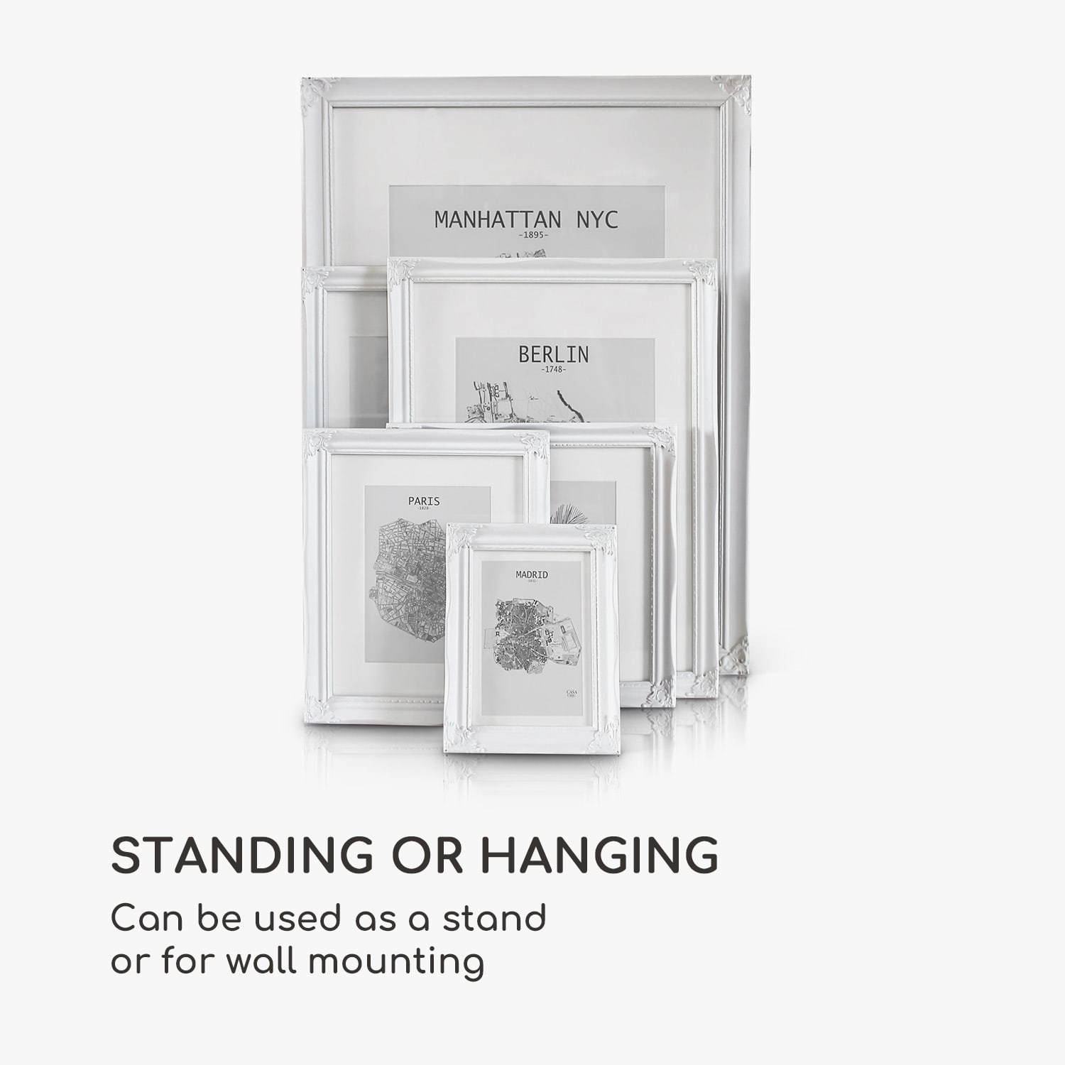 Rámy na obrazy Regent od Casa Chic by blumfeldt sú vyrobené z pravého dreva a zdobené ornamentmi zo syntetickej živice. Dokonale prezentujú tvoje fotografie a obrazy vo formáte na výšku aj na šírku. Dômyselne navrhnutý profil rámu v rokokovom dizajne tvorí nádherný kontrast k modernému zariadeniu. Vytvor nástenné koláže alebo rozmiestni svoje obľúbené fotografie na príborník či na poličku. Priložená pasparta ponecháva výber vhodnej časti obrázku na teba. Sklenená tabuľa chráni pred prachom aj nečistotami a zároveň dotvára elegantný vzhľad rámov Regent.Vždy stredobodom pozornosti: fotorámčeky Regent od Casa Chic by blumfeldt.