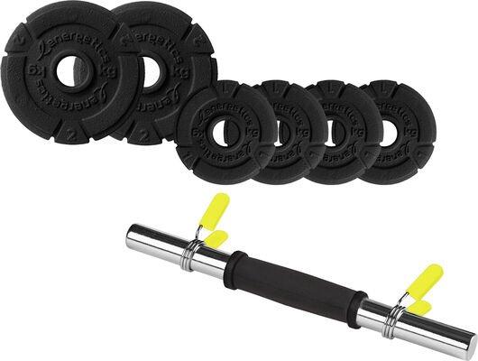 S týmto činkovým setom ľahko precvičíte celé telo. Sada skladajúca sa z činkovej 2kg tyče s pogumovanou rukoväťou a pružinovými sponami. K tomu zliatinové závažia, ktoré si môžete ľubovoľne kombinovať: 2×2 kg, 4×1 kg.