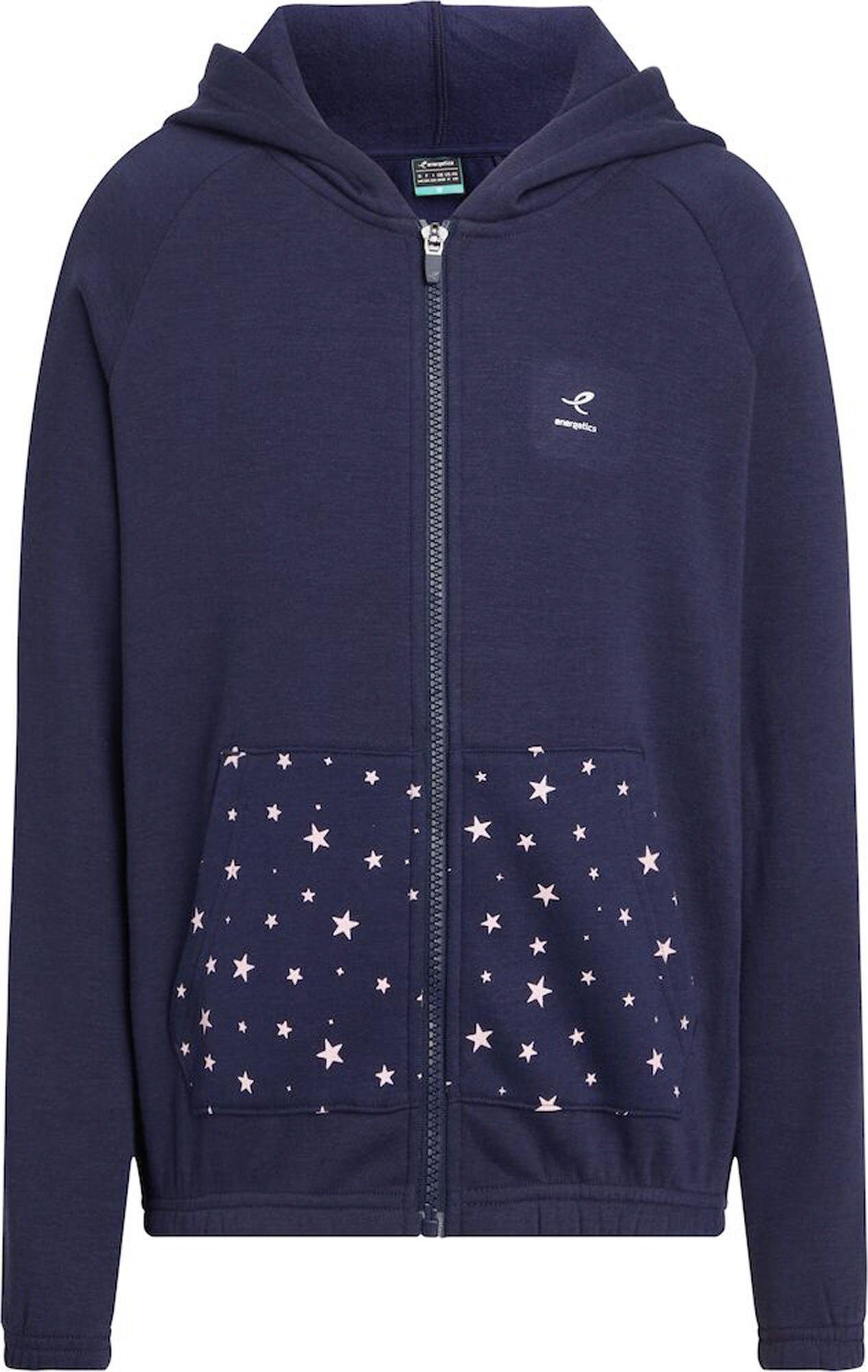 Dievčenská mikina s kapucňou Energetics Rose VI Hooded Jacket Girls má zips po celej dĺžke, pevnú kapucňu a delené klokanie vrecko. Elastický lem a lemy rukávov zadržiavajú teplo a zvyšujú komfort.