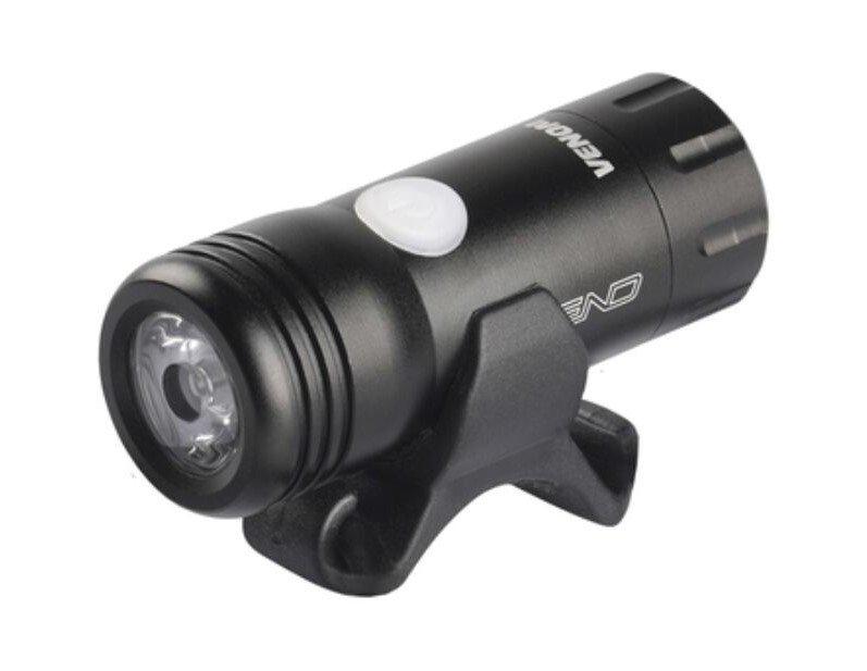 Jednoducho tvarované predné svetlo Extend Front Light Venom 150 USB s možnosťou montáže na riadidlá, alebo na prilbu pomocou Extend H-ADAPTER (nie je súčasťou balenia).