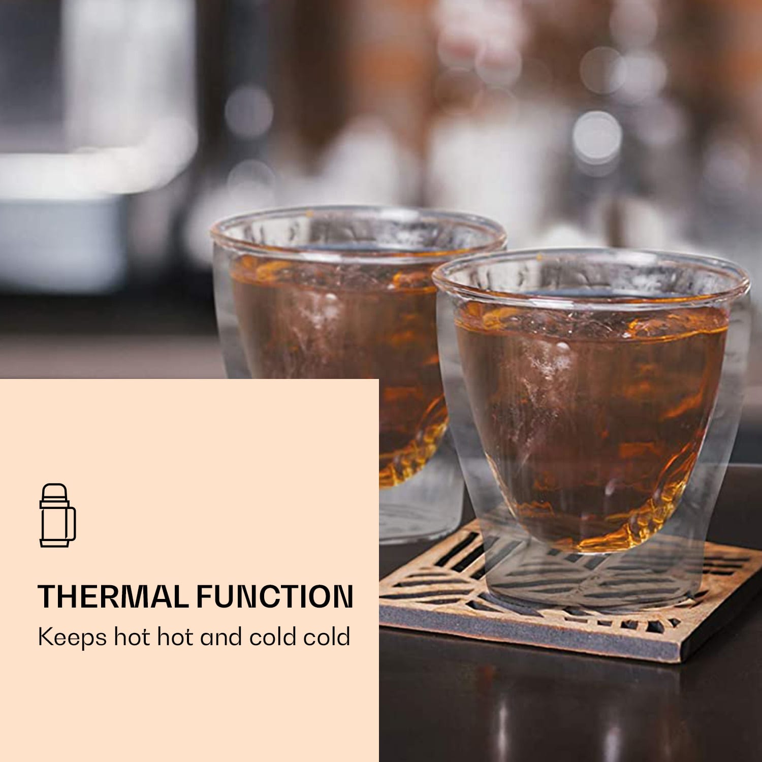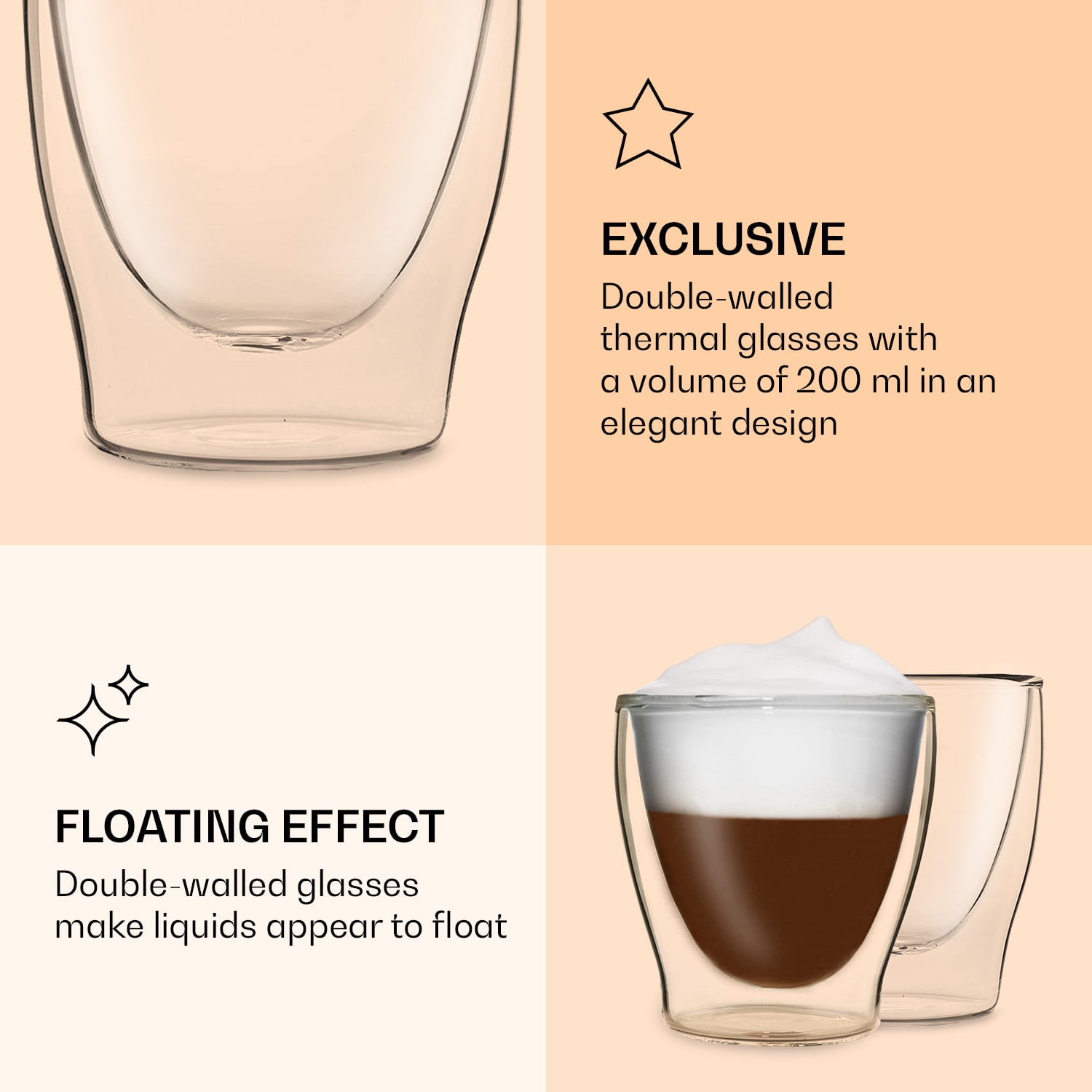 Luxusný pohár DUOS od Feelino by Klarstein je vyrobený ručne a svojím elegantným dizajnom obohatí vaše obytné prostredie. Dvojitá sklenená vrstva udrží studené nápoje dlhšie studené a teplé nápoje dlhšie teplé. Tento atraktívny pohár na espresso, čaj, panáky, aperitívy alebo dezerty je vyrobená z borosilikátového skla a je mimoriadne odolný a žiaruvzdorný: Je odolný proti poškriabaniu, veľmi ľahký a samozrejme vhodný do umývačky riadu. Systém dvojitých stien poskytuje aj úžasný optický efekt, vďaka ktorému sa zdá, že sa kvapaliny vznášajú. Štýlové, robustné a ručne vyrobené – dvojstenné termo poháre DUOS od spoločnosti Feelino by Klarstein.