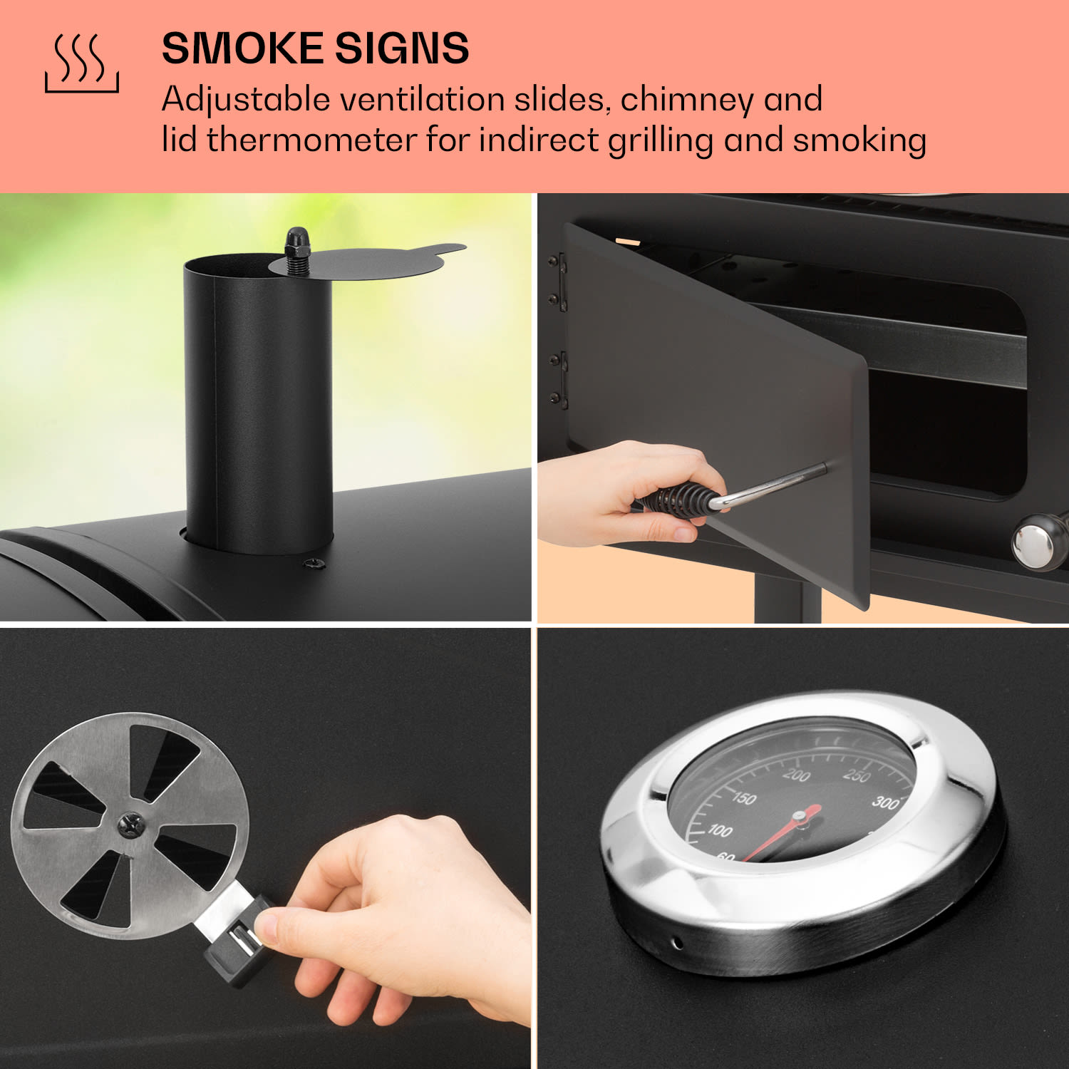 Klarstein Aberdeen, kombinovaný gril, plyn, drevené uhlie, údiareň, teplomer, 2 bočné stolíky, mobilný