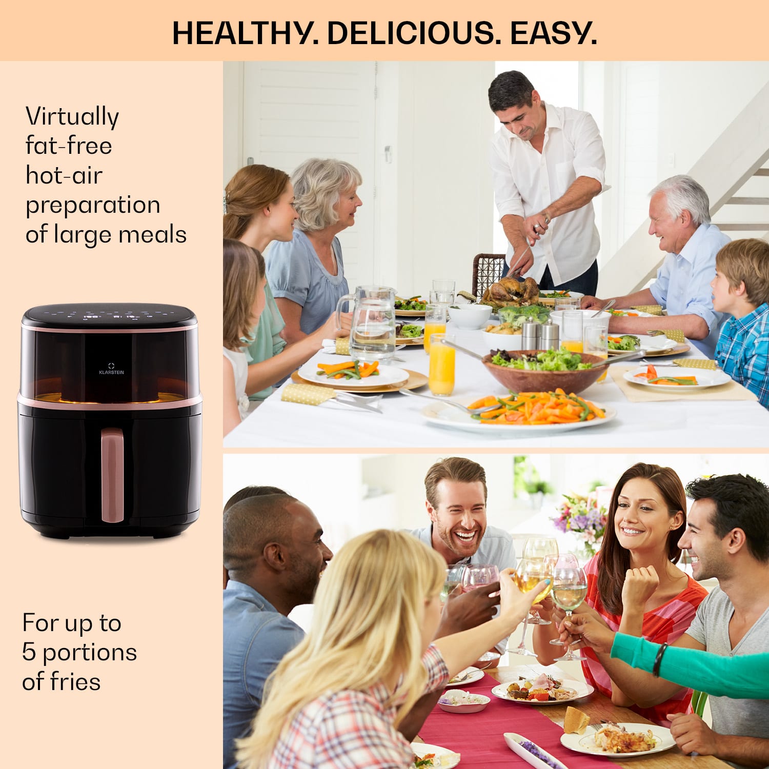 Klarstein Air Bloom, teplovzdušná fritéza, 1500 W, 7,5 l, 16 programov, s funkciou naparovania