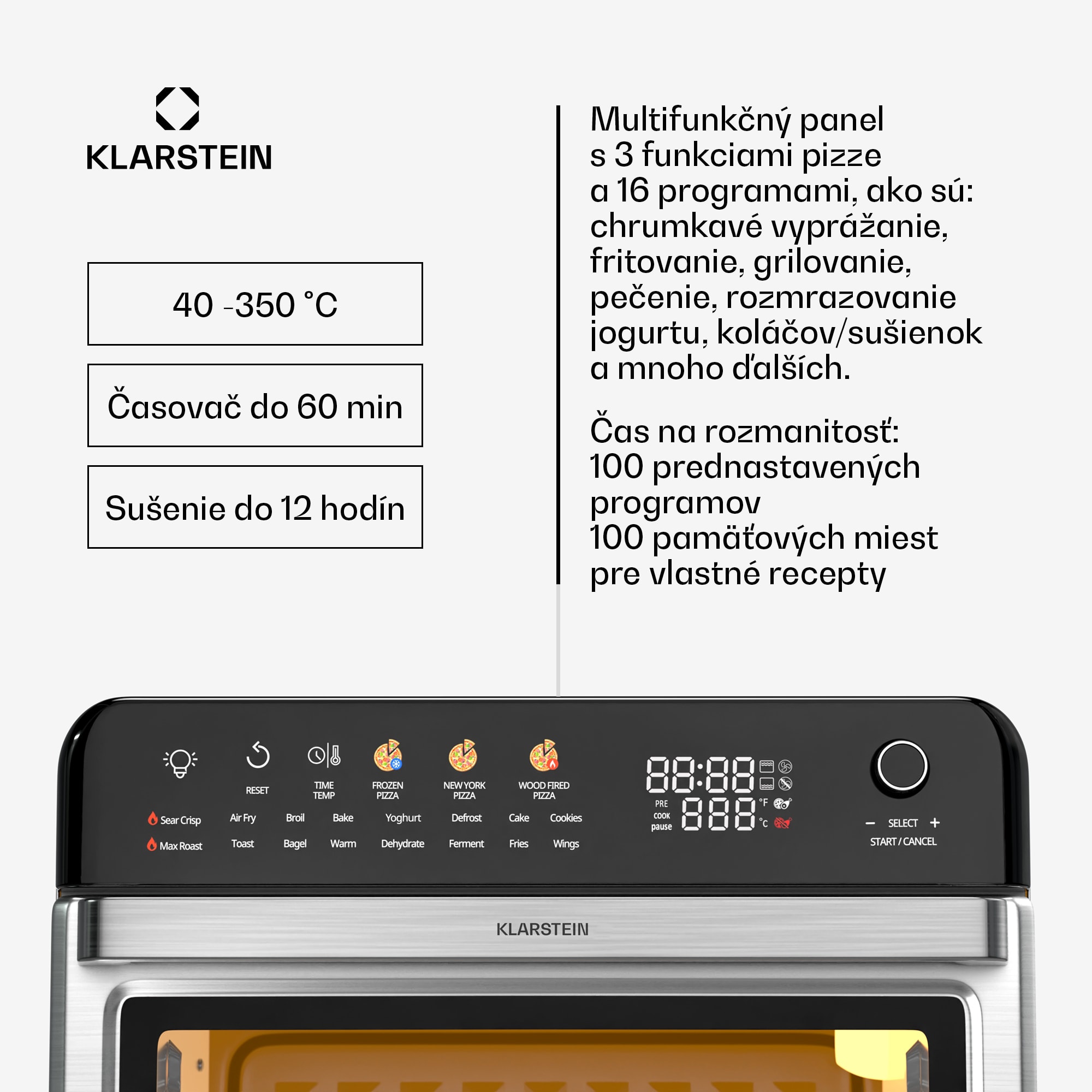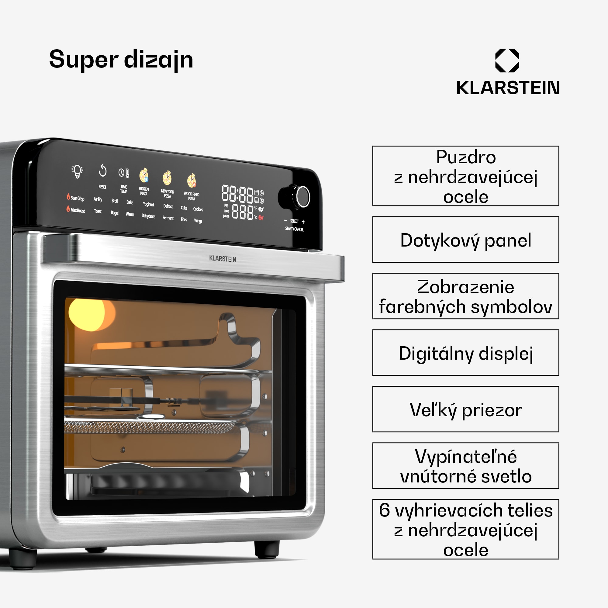 Klarstein AirGlaze Digital teplovzdušná fritéza, 2200 W, 19 programov, vrátane príslušenstva, ktoré možno umývať v umývačke riadu