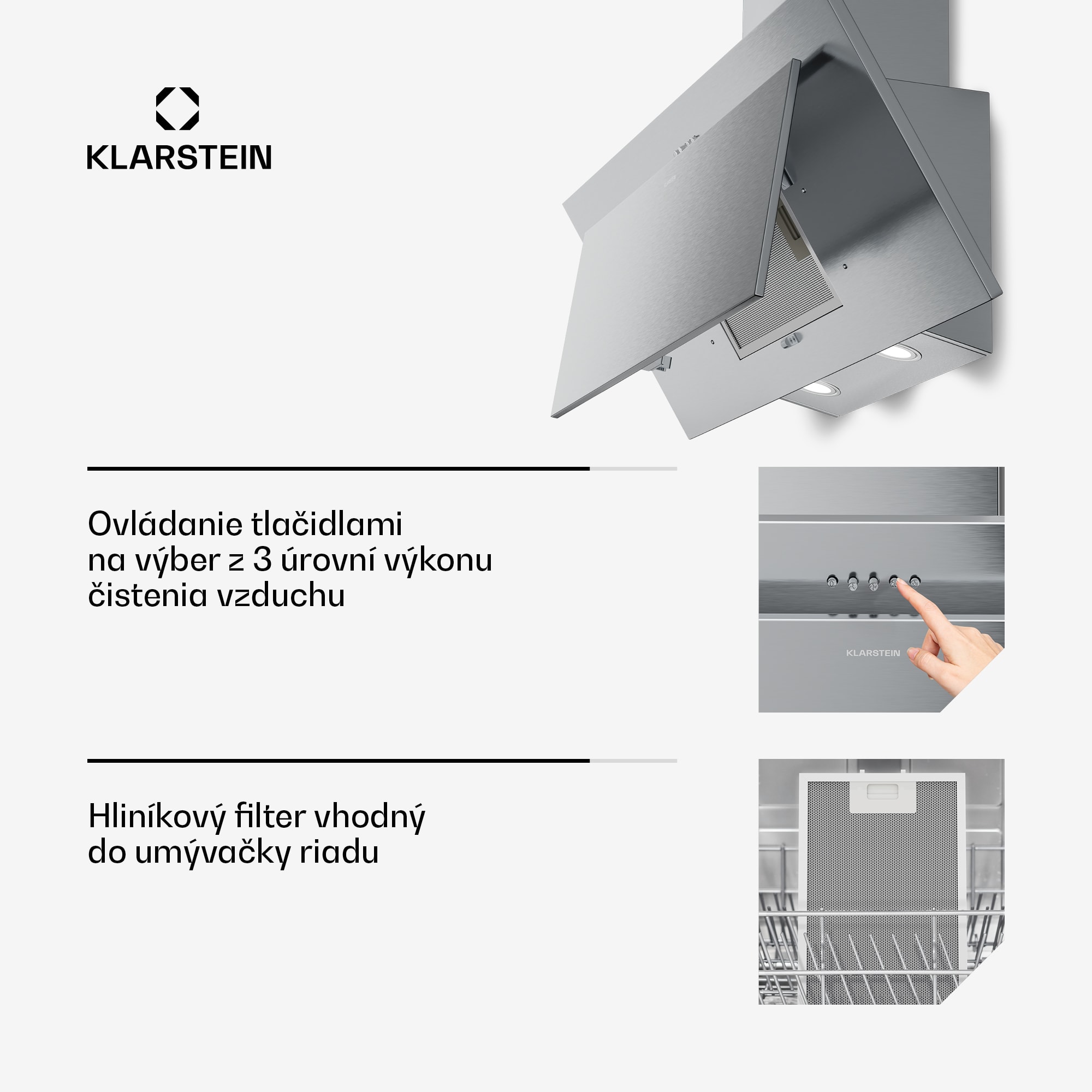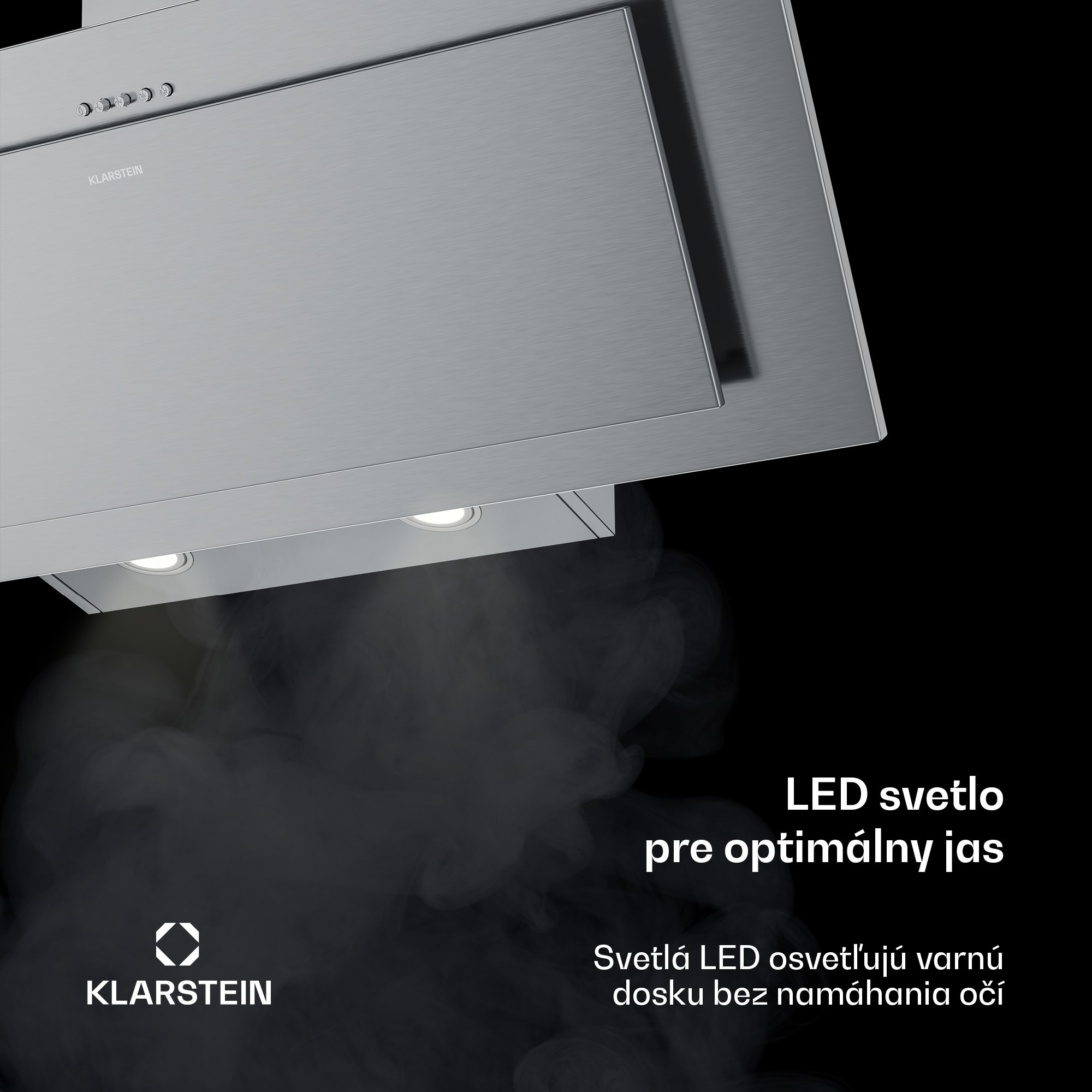 Klarstein Athena šikmý digestor | režim odsávania vzduchu a recirkulácie | 404 m³/h | 56 W | 90 cm
