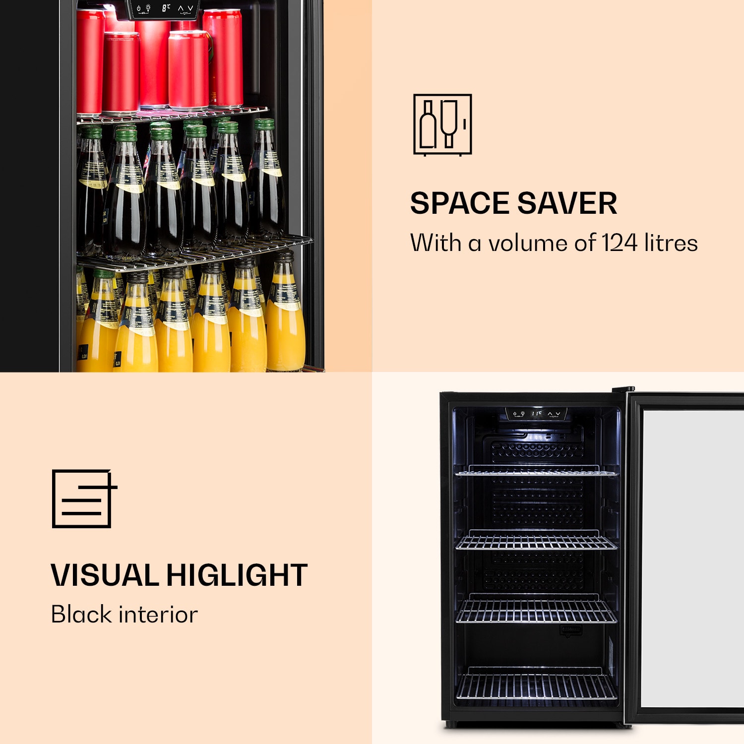 Klarstein Beersafe 4XL, chladnička, 124 l, 0-10°C, sklo, energet. trieda G, nehrdzavejúca oceľ