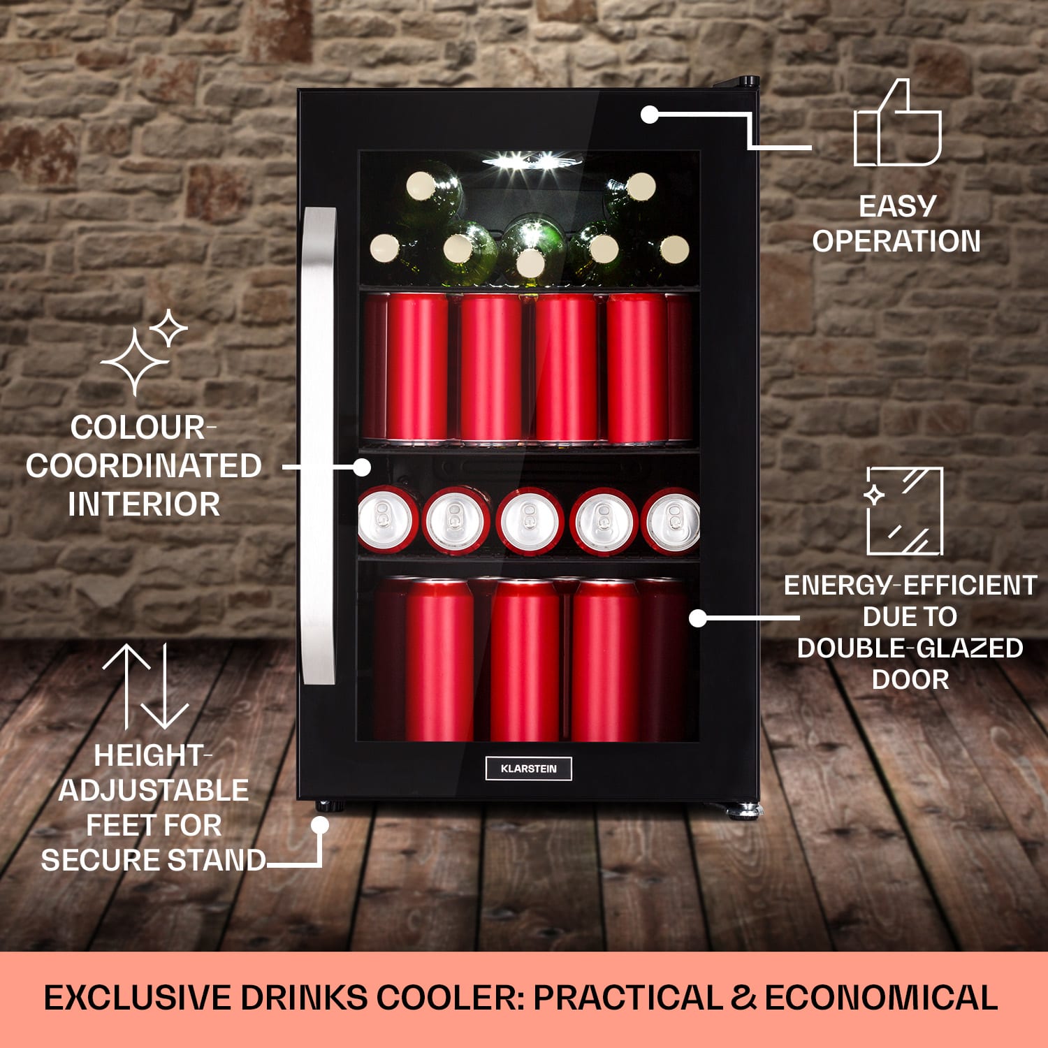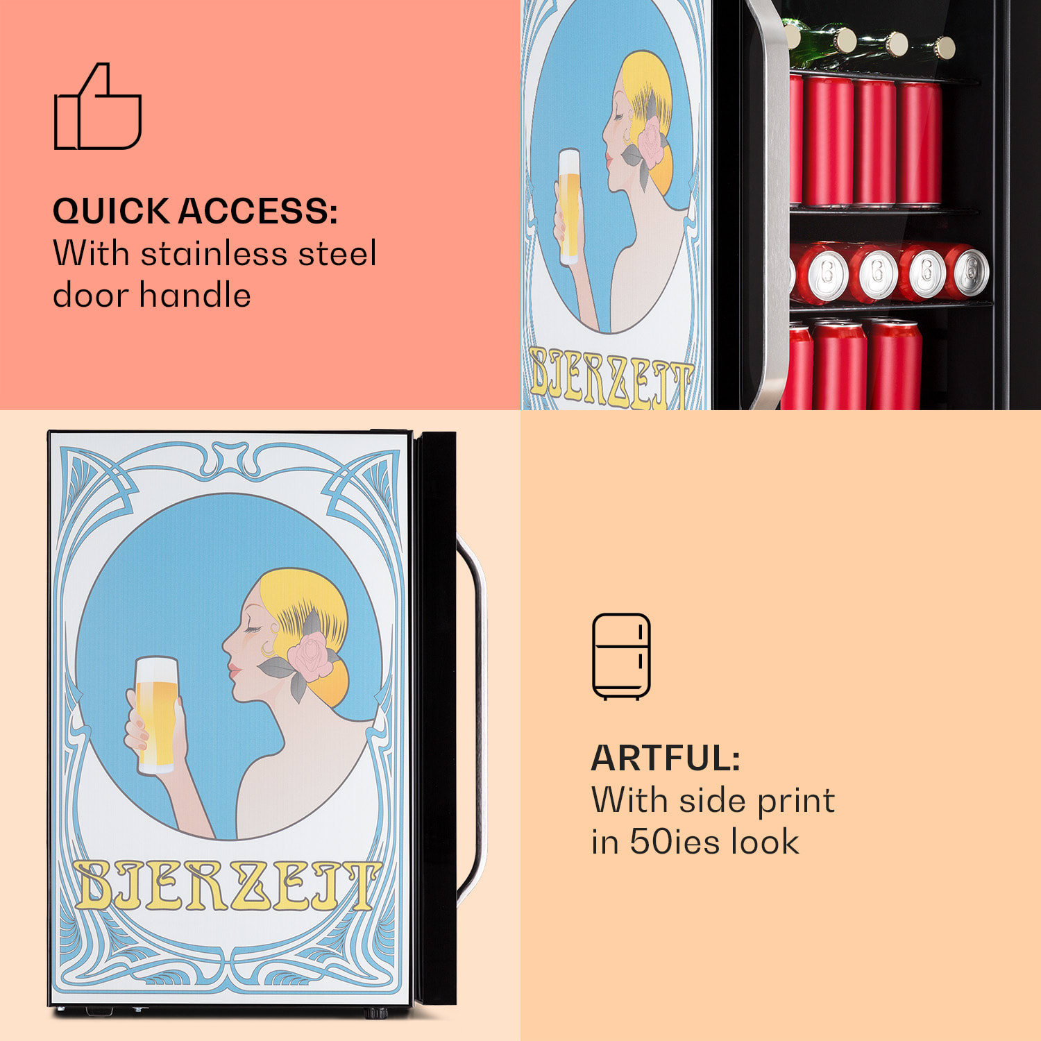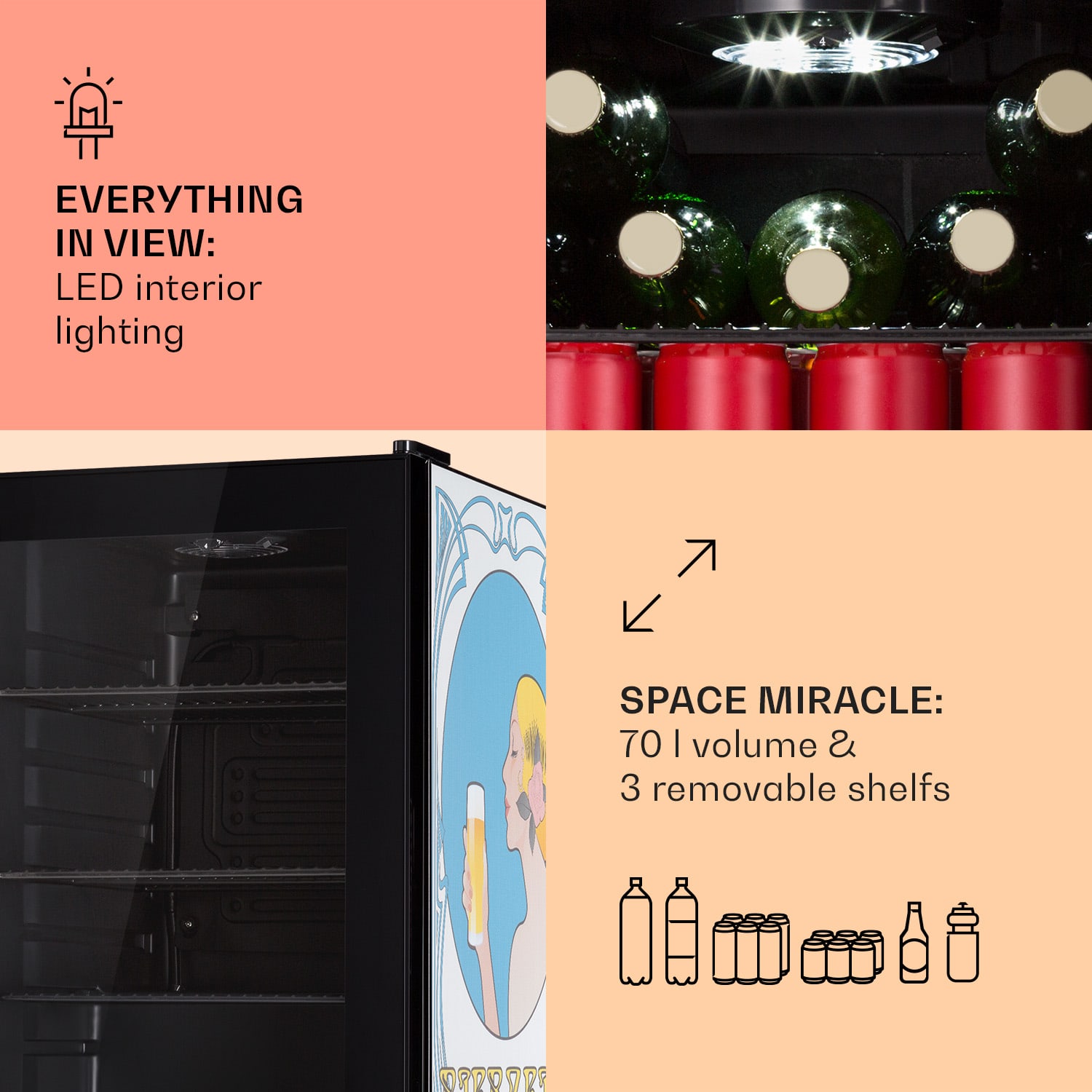 Klarstein Beersafe 70 Bierzeit Edition, chladnička, 70 l, 3 police, panoramatické sklenené dvere, nehrdzavejúca oceľ