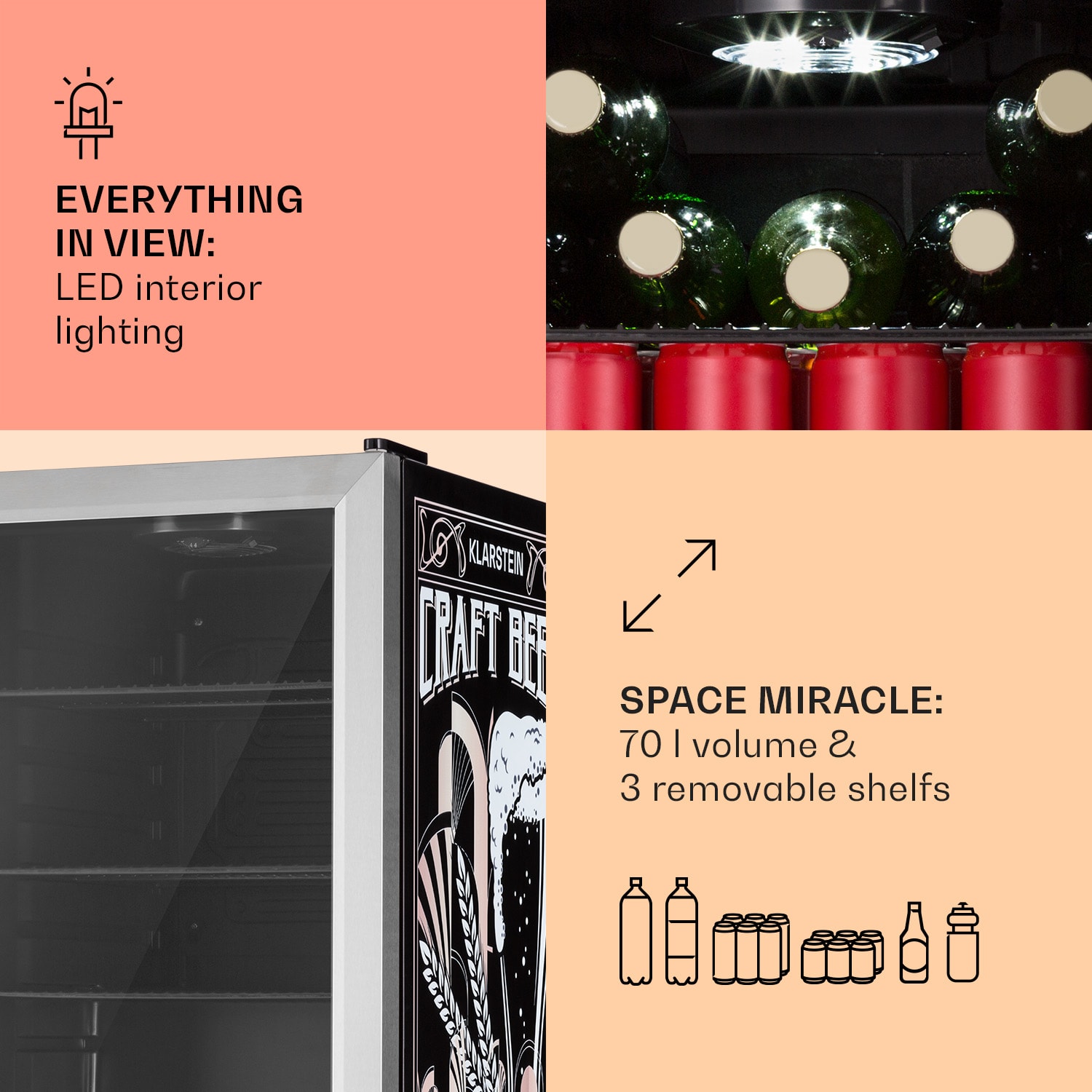 Klarstein Beersafe 70 Craft Beer Edition, chladnička, 70 litrov, sklenené dvere, nehrdzavejúca oceľ