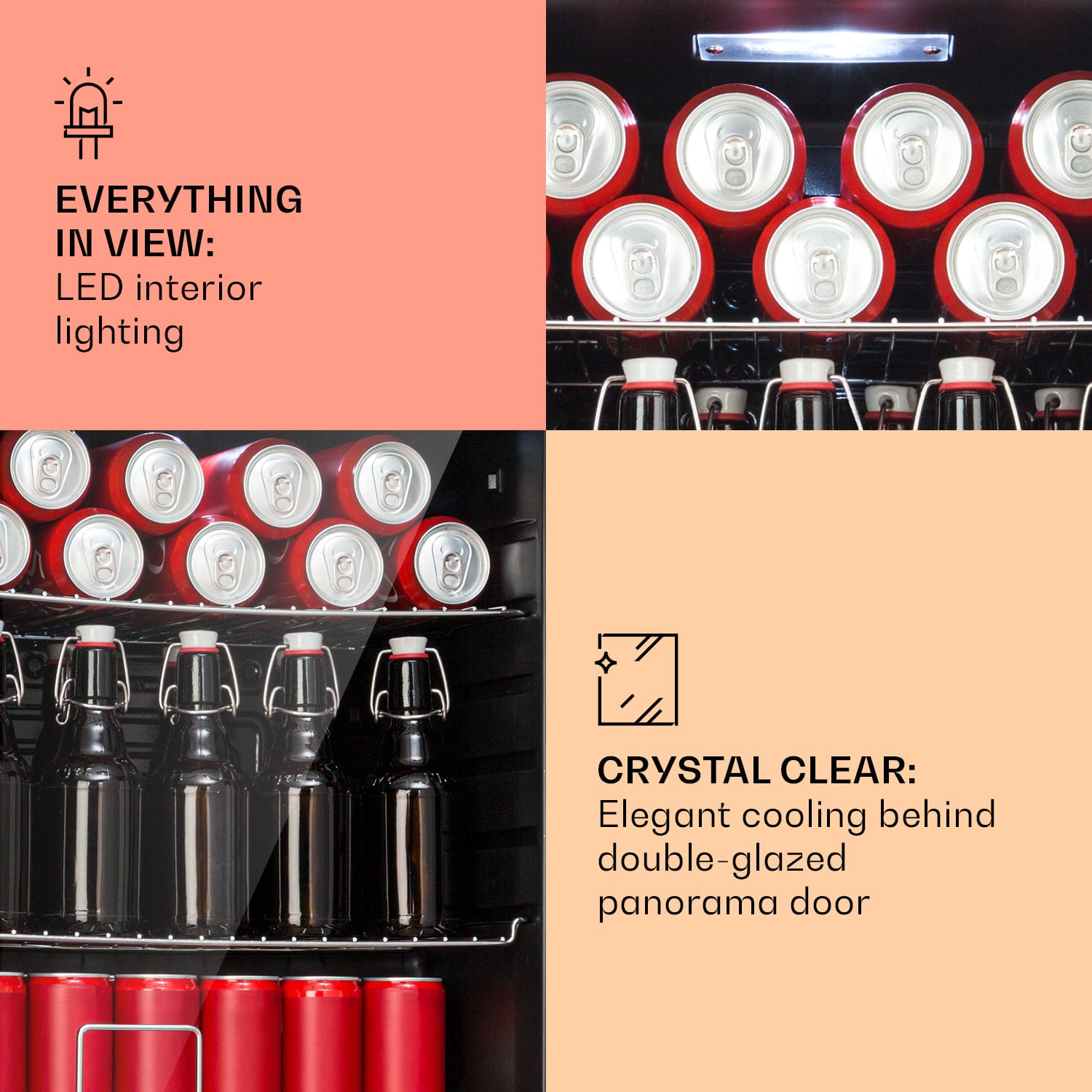 Klarstein Beersafe XL, chladnička, 60 l, 2 police, dvojitá izolácia panoramatických dvierok, nehrdzavejúca oceľ