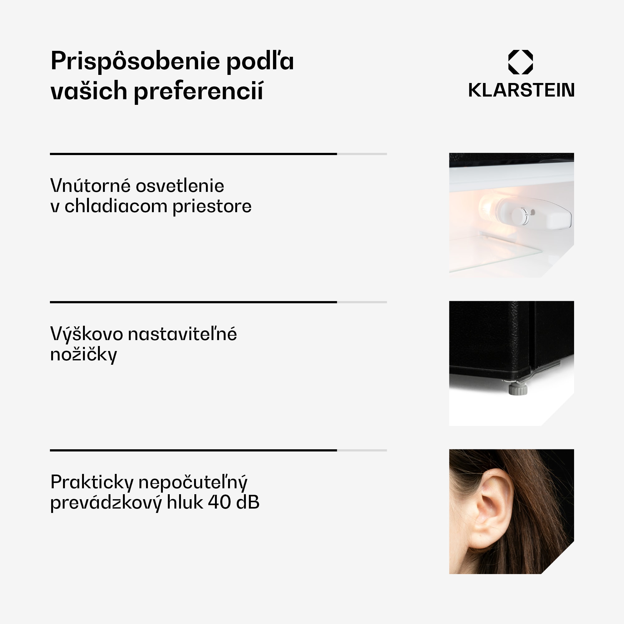 Klarstein Big Daddy Cool, kombinovaná chladnička, 61/26 l, 40 dB, energet. trieda F, čierna