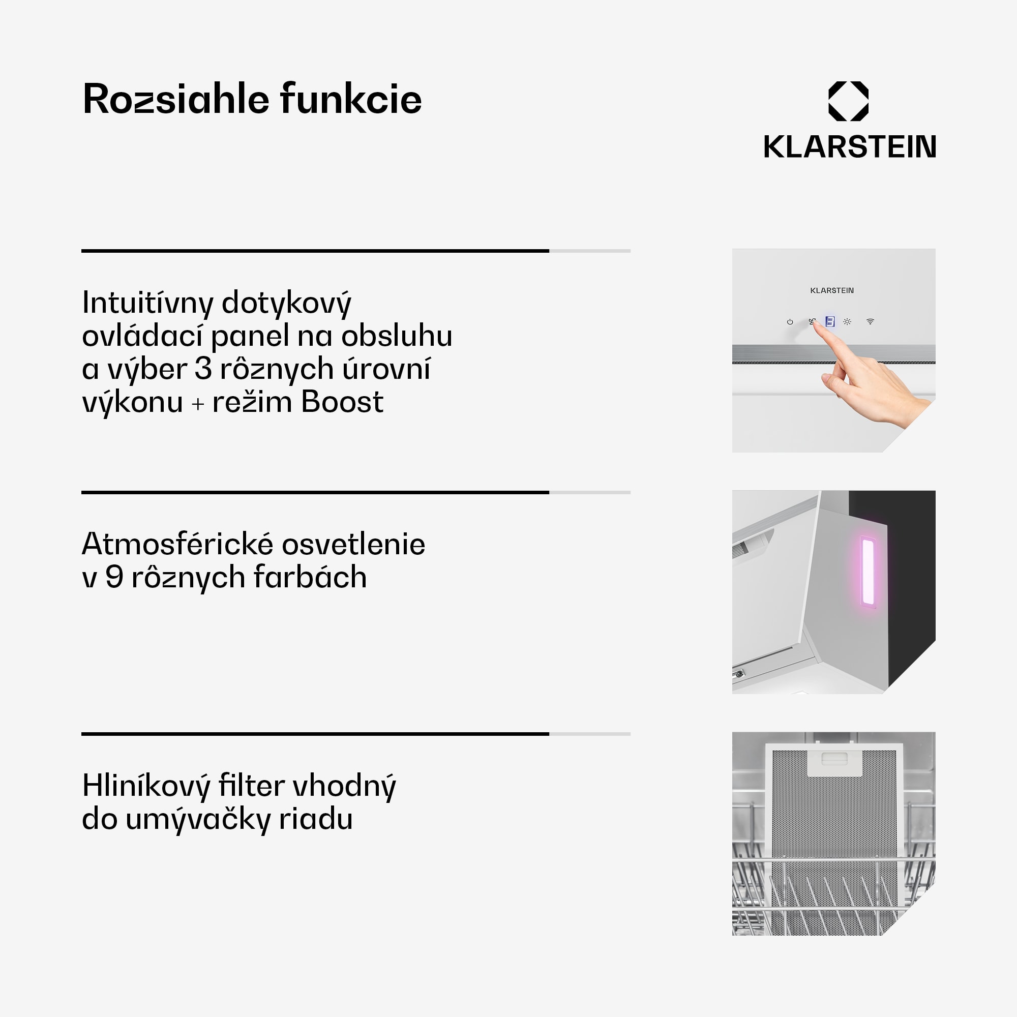 Digestor Klarstein BigBite s voľným priestorom na hlavu kombinuje kvalitný sklenený dizajn s vysokým výkonom a energeticky úspornou technológiou. Šikmý digestor je vybavený jasným LED osvetlením, ktoré umožňuje nerušený výhľad na varnú plochu. Vďaka prietoku vzduchu až 417 m³/h v režime Boost a výkonnému 55 W motoru udržiava kuchyňu vždy sviežu a bez zápachu. Môžete si vybrať tri rôzne úrovne výkonu a režim Boost.Digestor je priestorovo úsporný a vďaka svojmu šikmému tvaru poskytuje väčšiu voľnosť pohybu nad varnou doskou. Môže pracovať v režime odsávania vzduchu aj v režime recirkulácie a pracuje v triede energetickej účinnosti A+++.