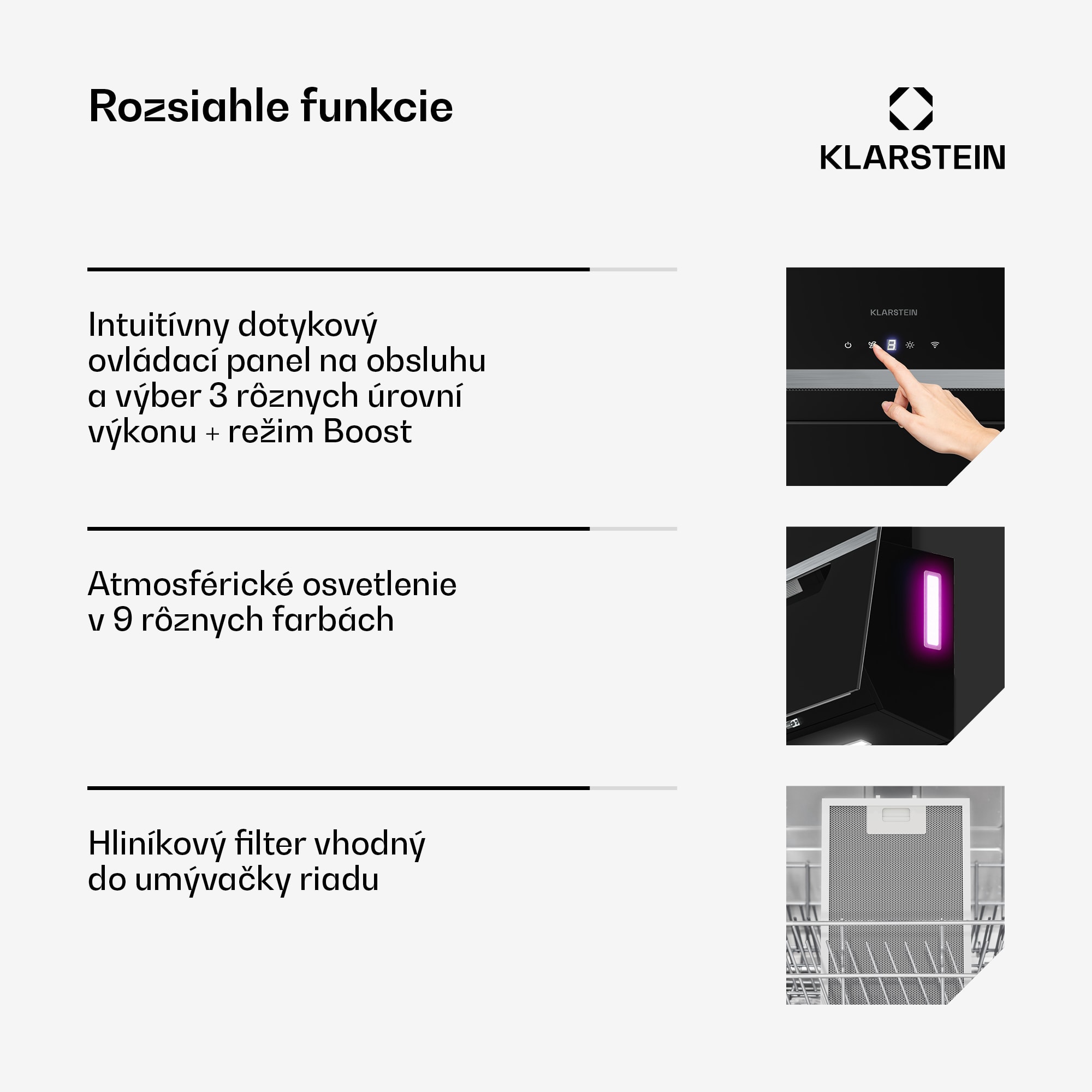 Digestor Klarstein BigBite s voľným priestorom na hlavu kombinuje kvalitný sklenený dizajn s vysokým výkonom a energeticky úspornou technológiou. Šikmý digestor je vybavený jasným LED osvetlením, ktoré umožňuje nerušený výhľad na varnú plochu. Vďaka prietoku vzduchu až 417 m³/h v režime Boost a výkonnému 55 W motoru udržiava kuchyňu vždy sviežu a bez zápachu. Môžete si vybrať tri rôzne úrovne výkonu a režim Boost.Digestor je priestorovo úsporný a vďaka svojmu šikmému tvaru poskytuje väčšiu voľnosť pohybu nad varnou doskou. Môže pracovať v režime odsávania vzduchu aj v režime recirkulácie a pracuje v triede energetickej účinnosti A+++.