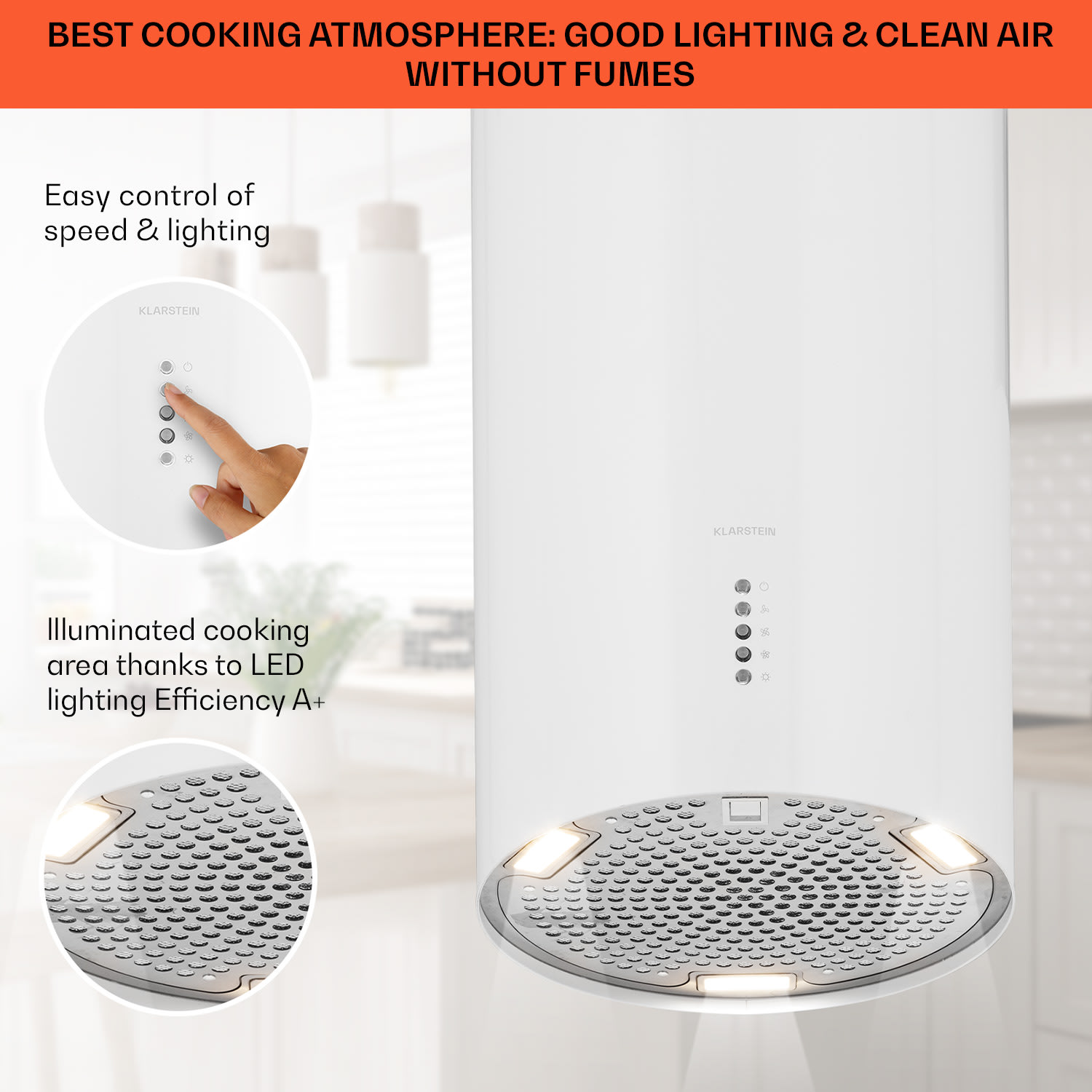 Klarstein Bolea, digestor, 38 cm, ostrovčekový, 600 m³/h, LED, filtre s aktívnym uhlím, nehrdzavejúca oceľ